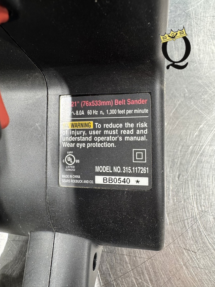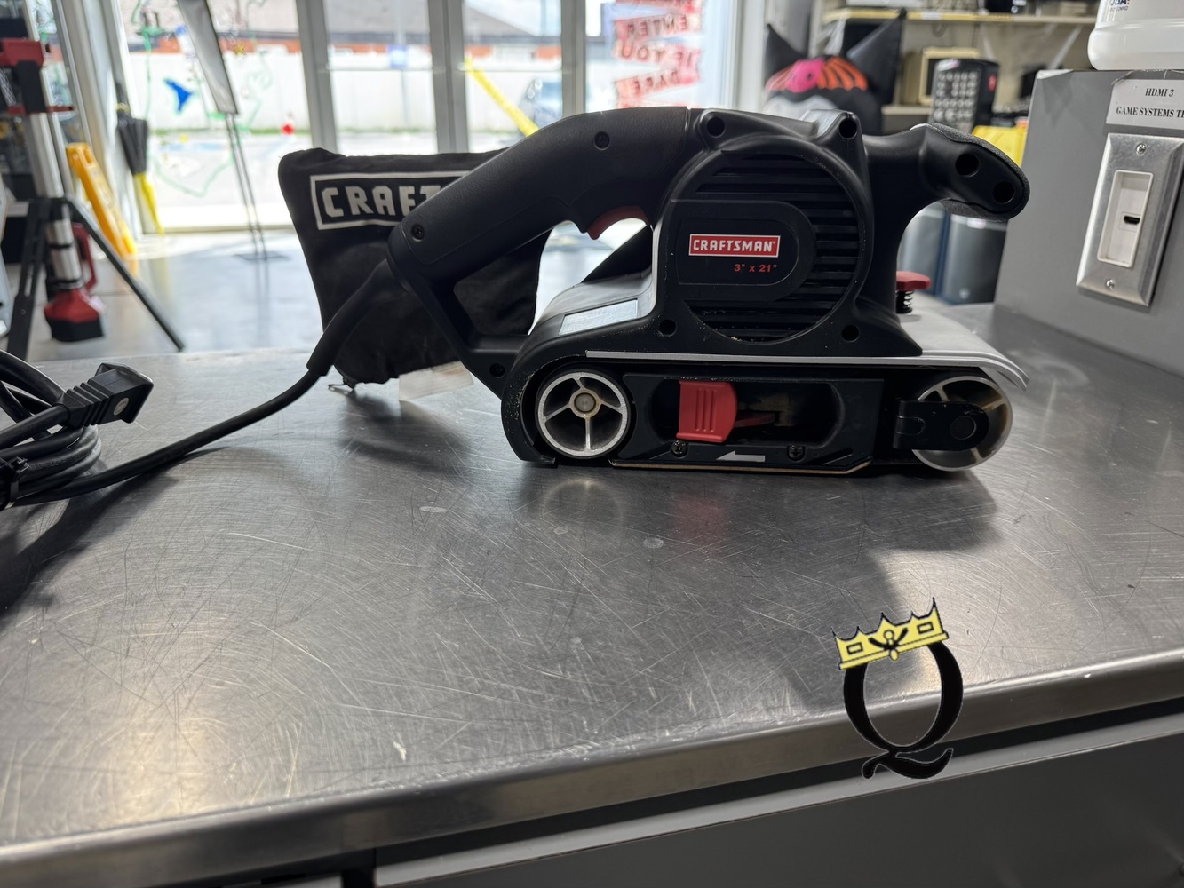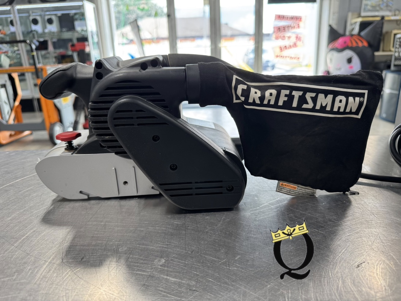 The Craftsman belt sander designed for professional use. Equipped with impressive features such as variable speed control and a quick-release belt change system, this tool ensures a smooth and efficient performance for woodworking tasks. Crafted for durability and precision, it's a must-have addition to every craftsman's toolkit.