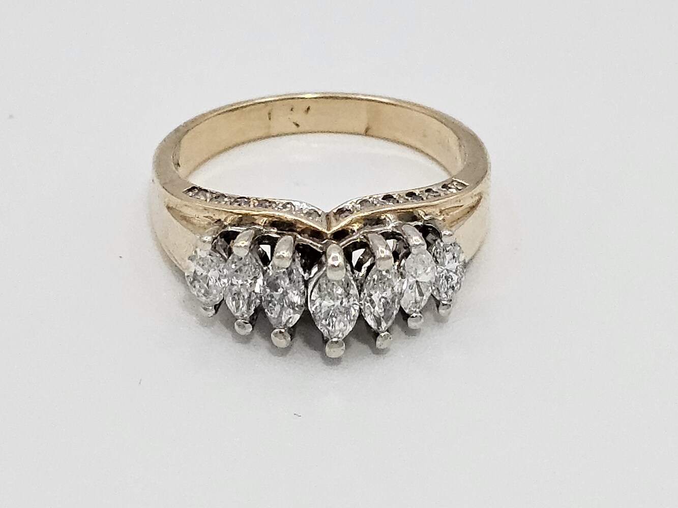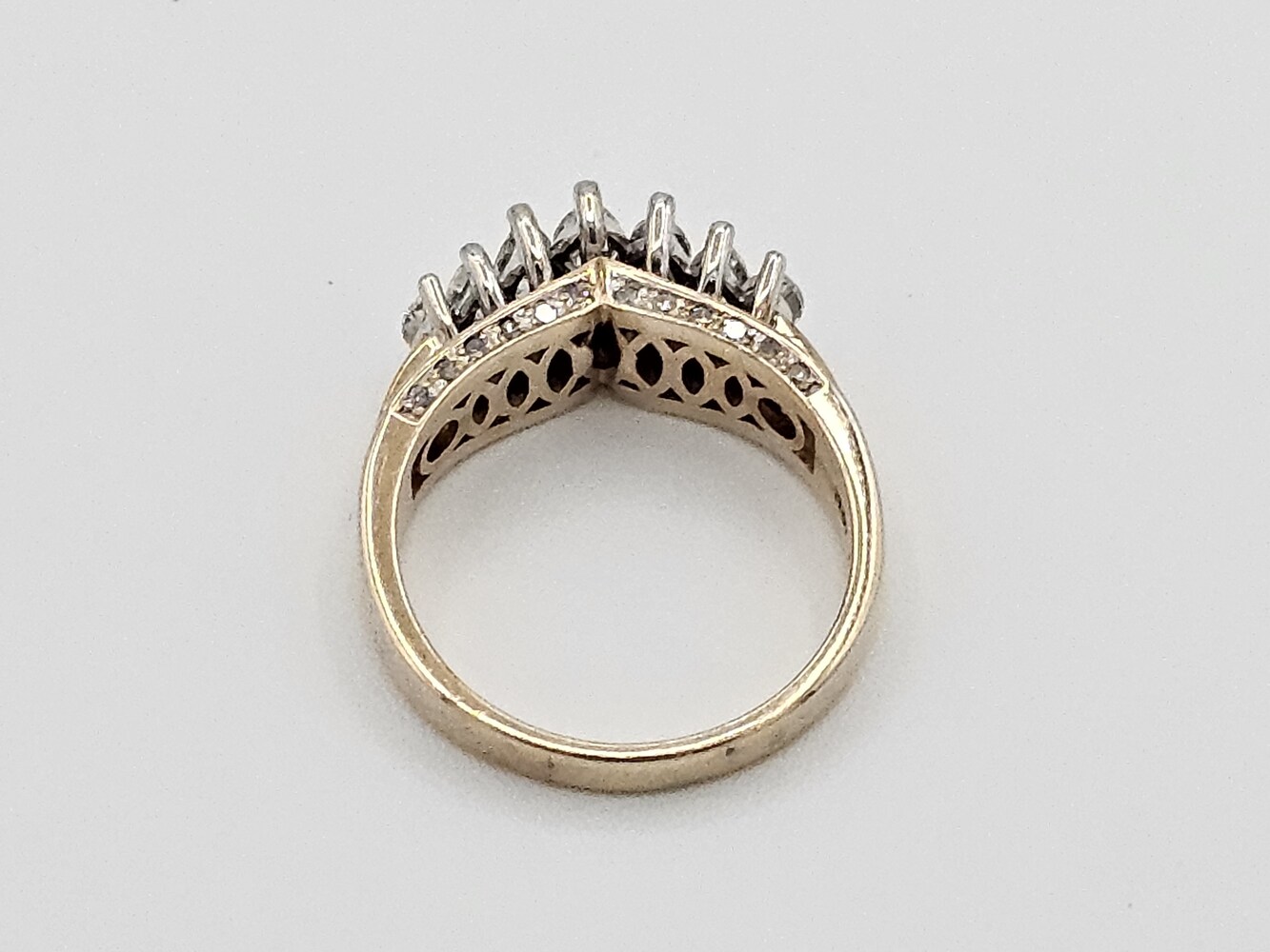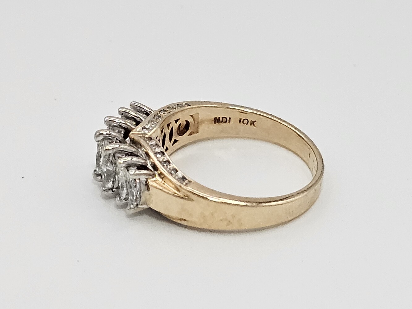 Unveiling an emblem of sophistication and luxury: A remarkable 10kt yellow gold ring. Sized ideally to a comfortable size 10, it harmoniously blends classic allure with contemporary design elements. This boasts a radiant cluster of dazzling diamonds, with each one adding distinctive sparkle. Weighing an attractive 4.70 dwts, this ring executes a masterstroke of craftsmanship. Own a treasure to cherish, a symbol of your unique style and opulence. Step into the limelight with this unforgettable jewel.