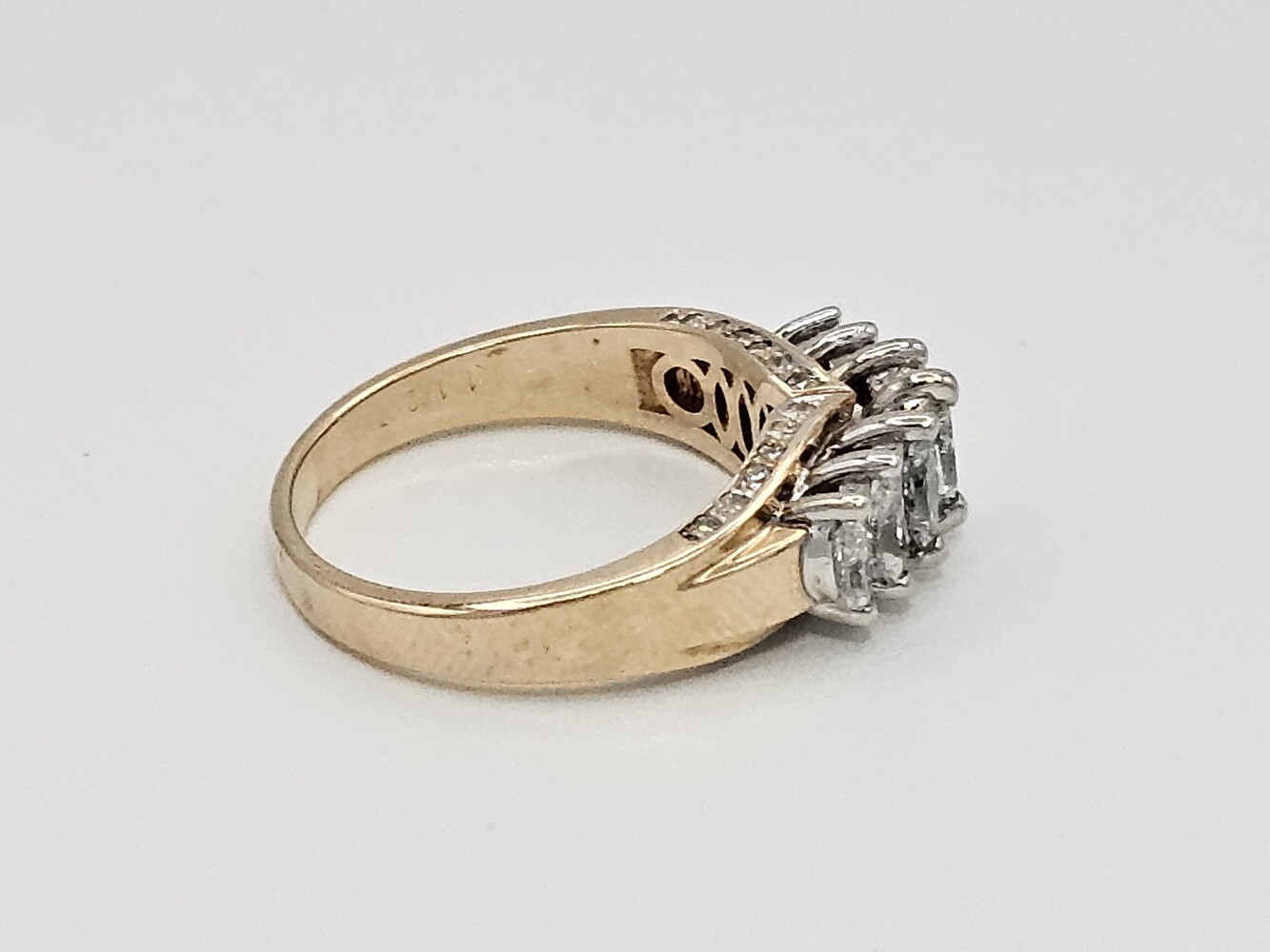 10kt yellow gold diamond cluster ring. Size 10, 4.70 dwts. Stone qulaity Aprox: Q: Si1 C: J Tdw: 1.50 Ct