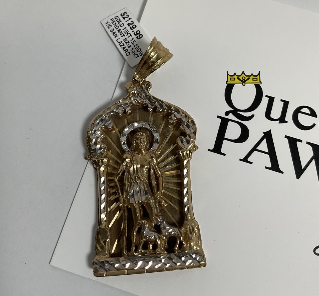 Exquisite Sz:3 10kt Gold San Lazaro Pendant for Men, boasting a significant weight of 15.20dwt. Truly an elegant emblem of faith.