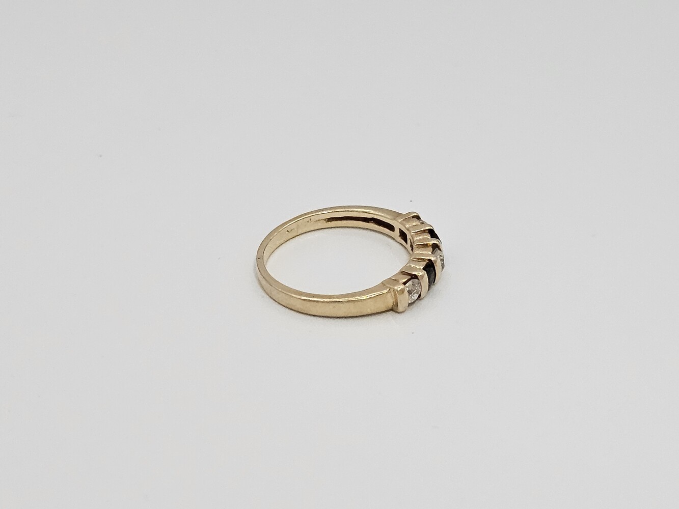 14kt yellow gold cluster ring with blue and clear stones. Size: 6.5, 1.80 dwts