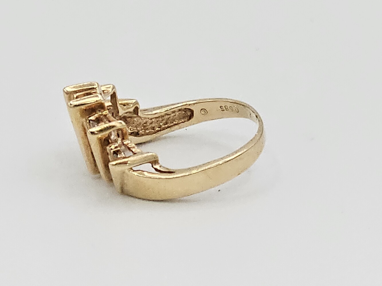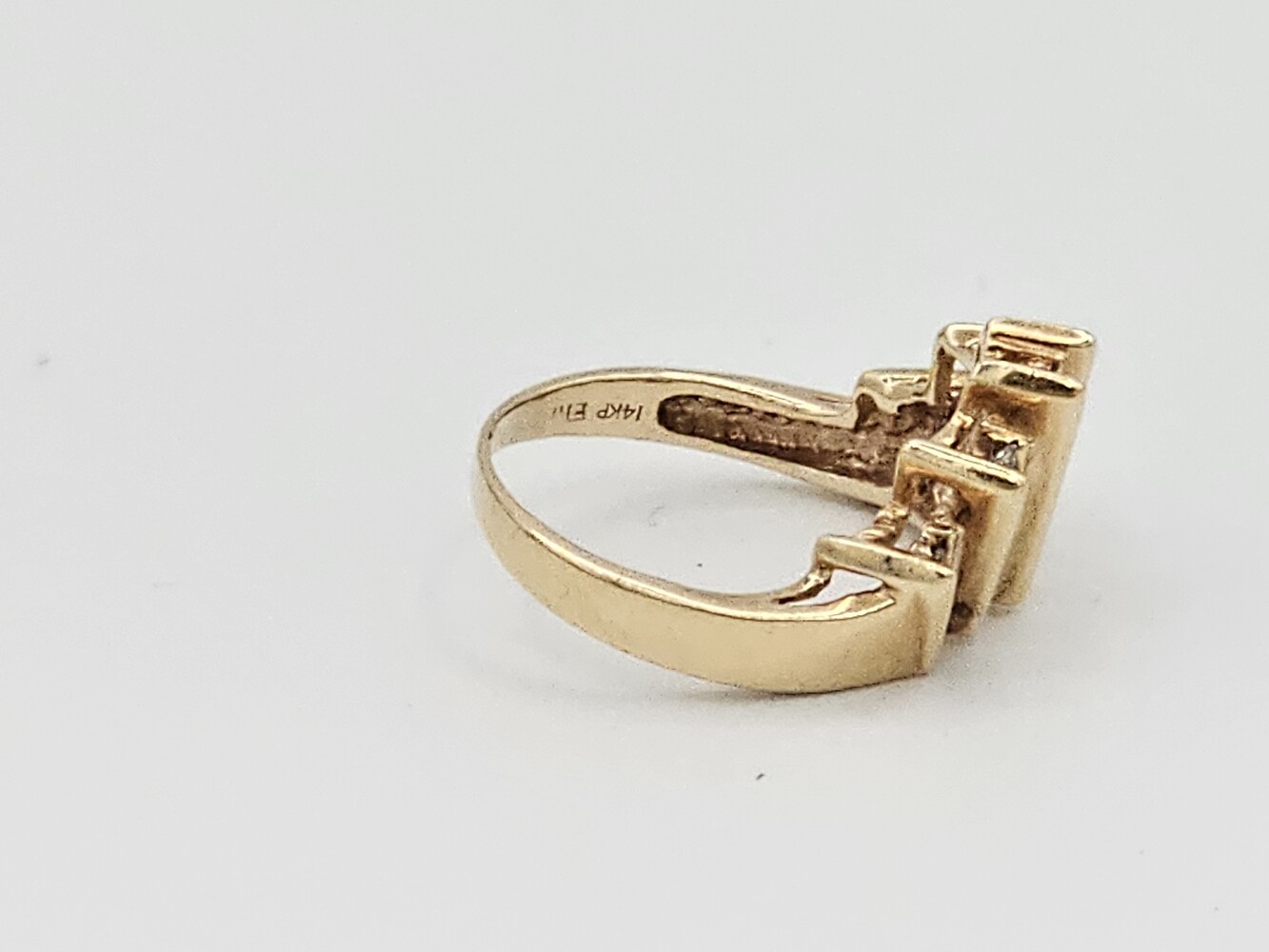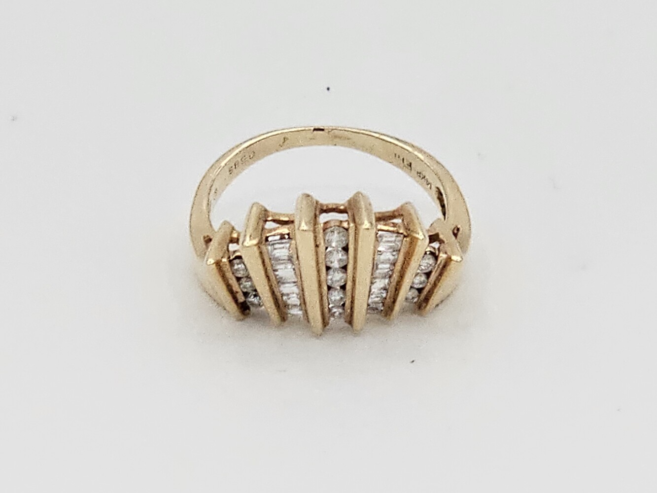 14kt yellow gold diamond ring. Size 7.5, 3.60 dwts. Stones aprox: Q: Si1-Si2 C:G-H Tdw: 0.35 Ct Diamond