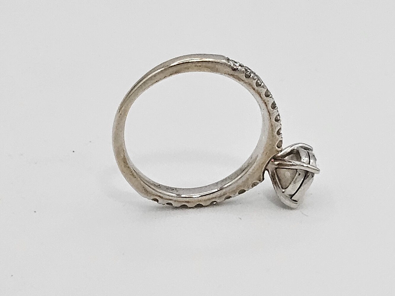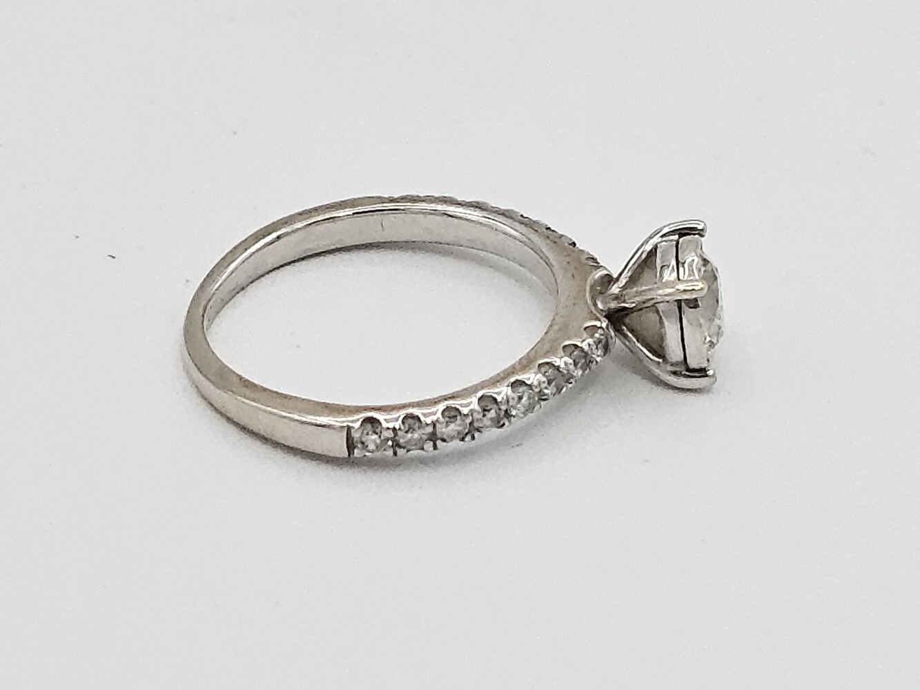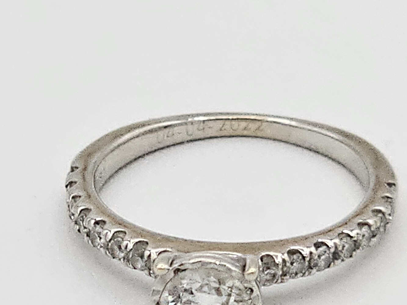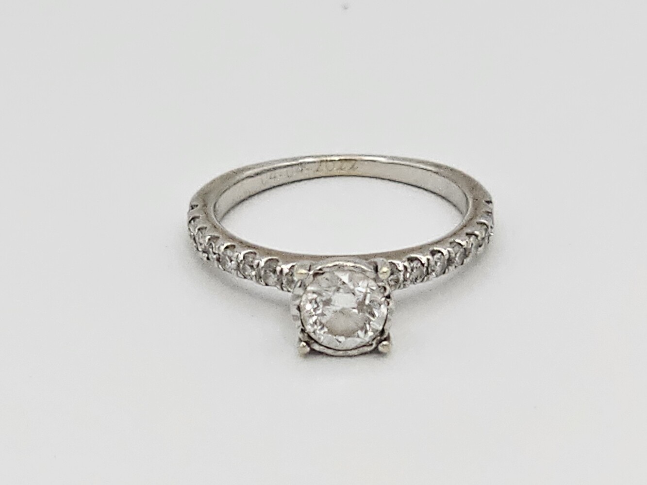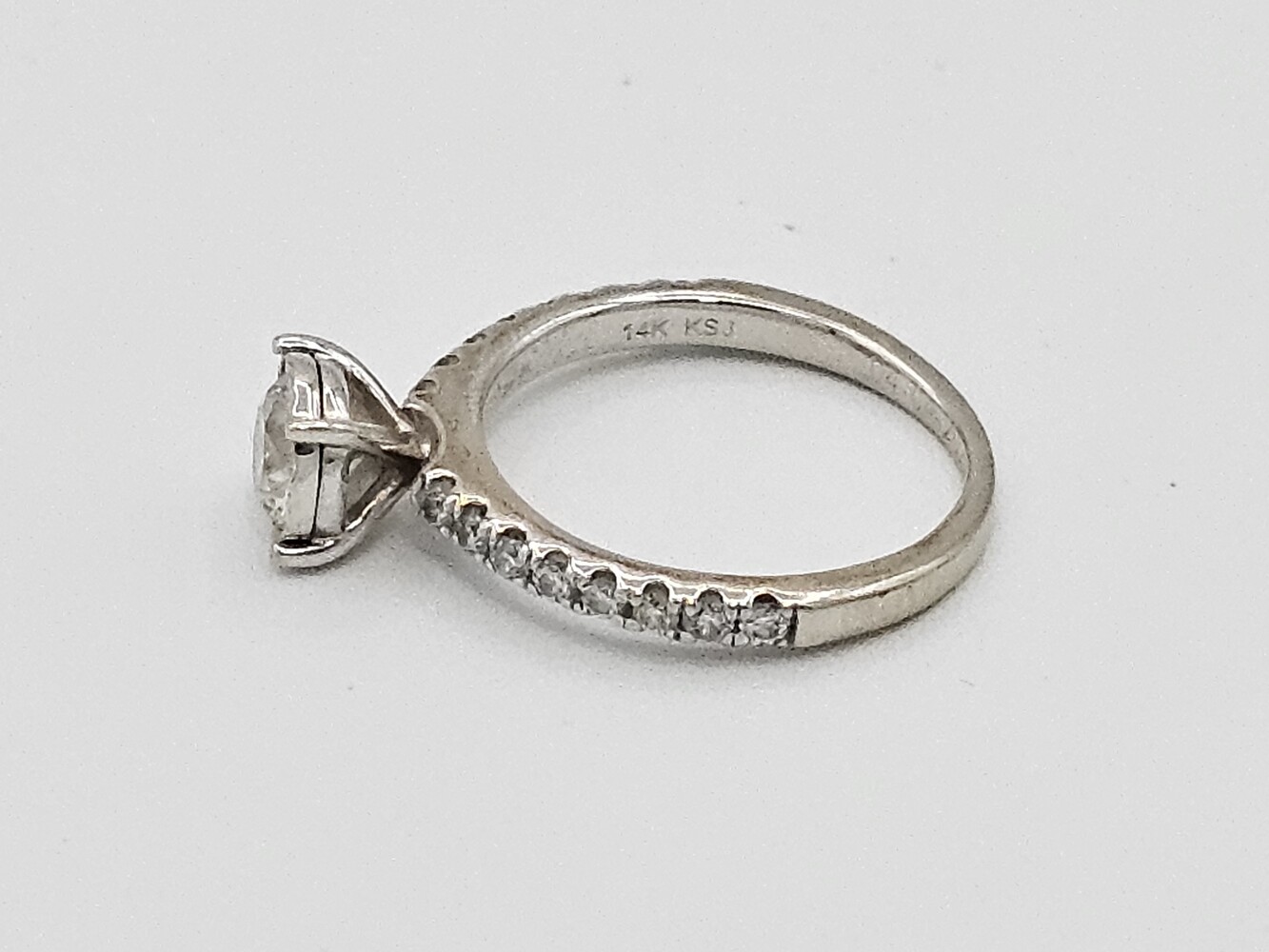 14kt white gold diamond ring. Size: 5, 1.70 dwts. Stones approx: Q: Si1 C: H Tdw: 0.90 Ct
