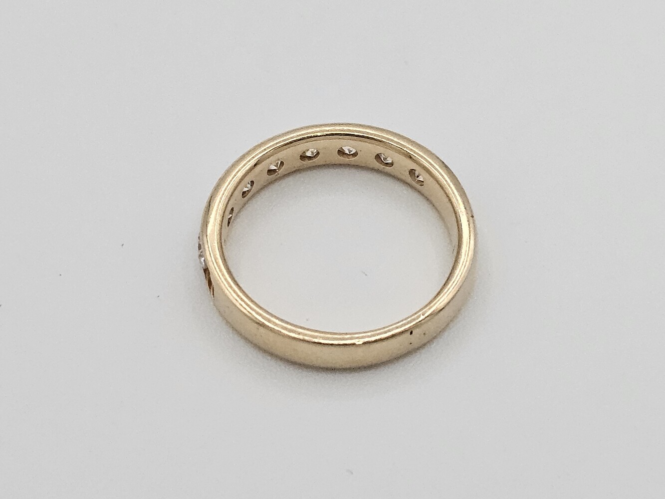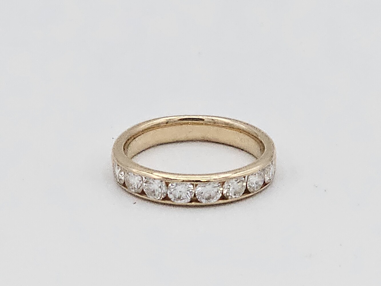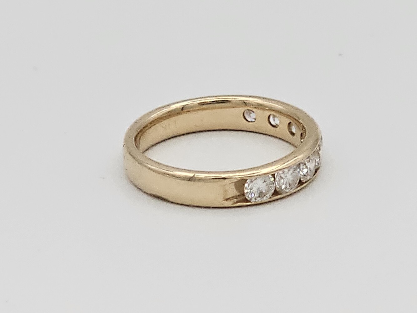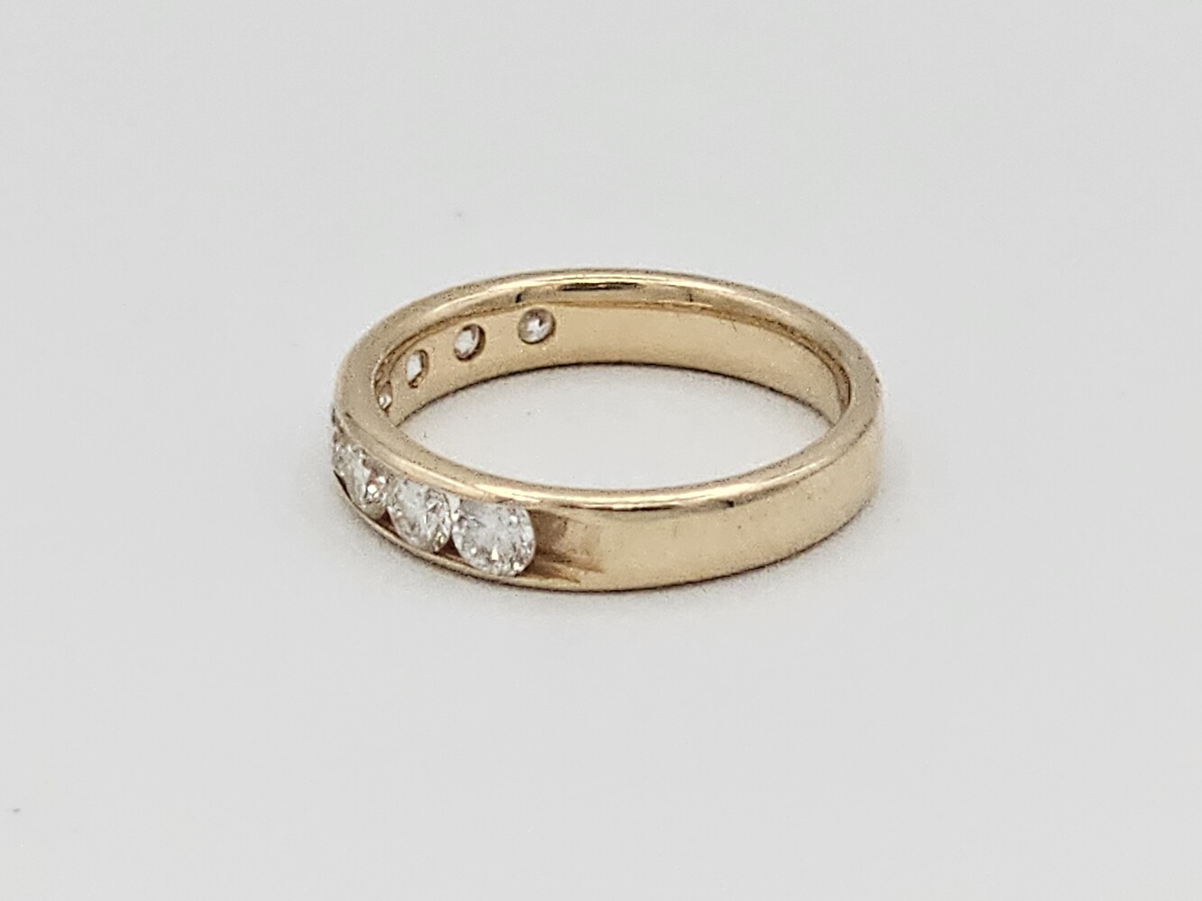 14kt yellow gold band ring. Size 6.5, 2.20 dwts. Stones aprox: Q: Si1 C: F-G Tdw: 1.30 Ct