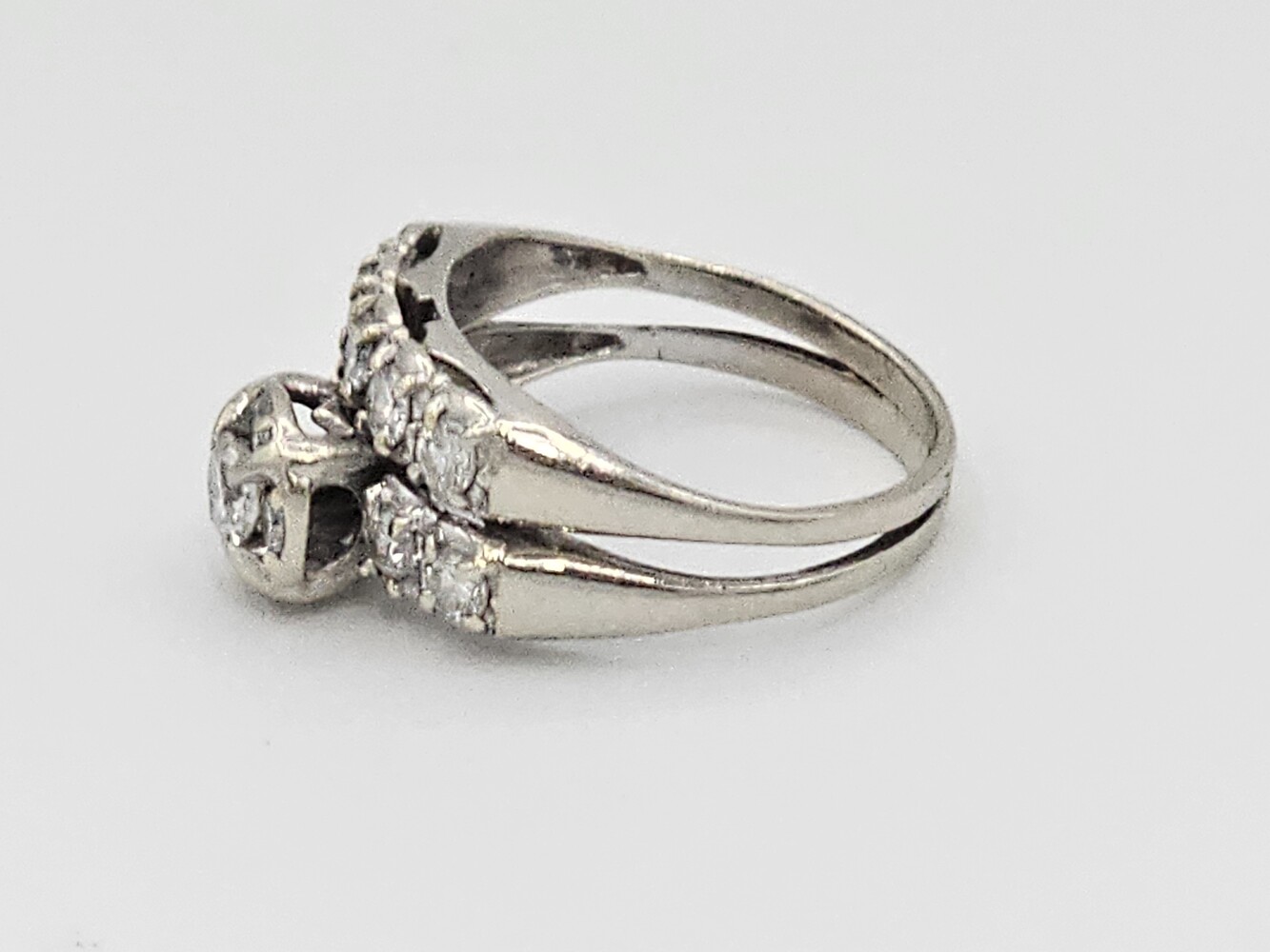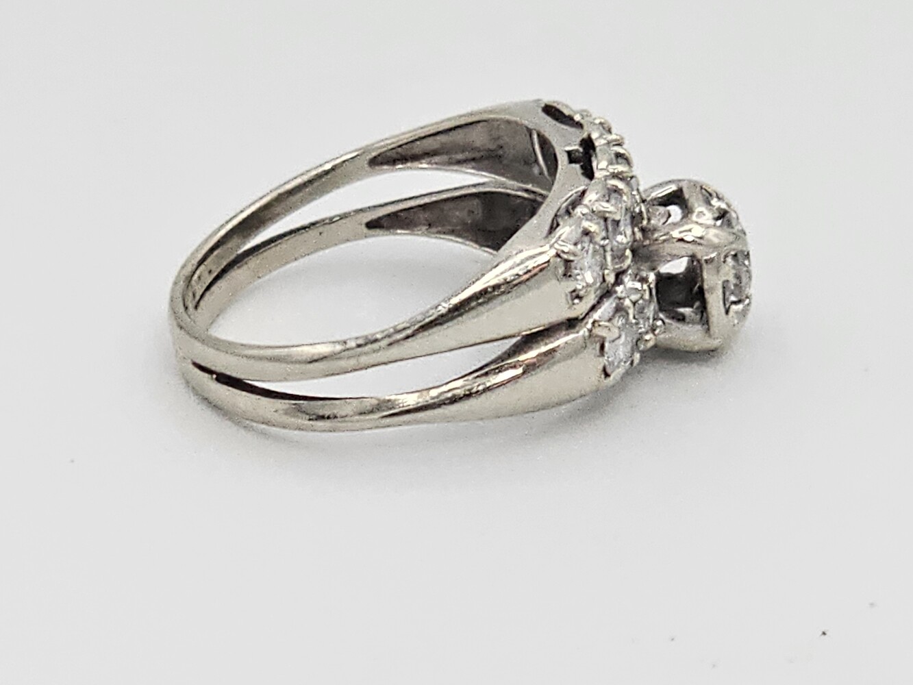 14kt white gold cluster ring. Size 6, 2.60 dwts. Stone aprox: Q: Si1 C: H-I Tdw: 0.85 Ct