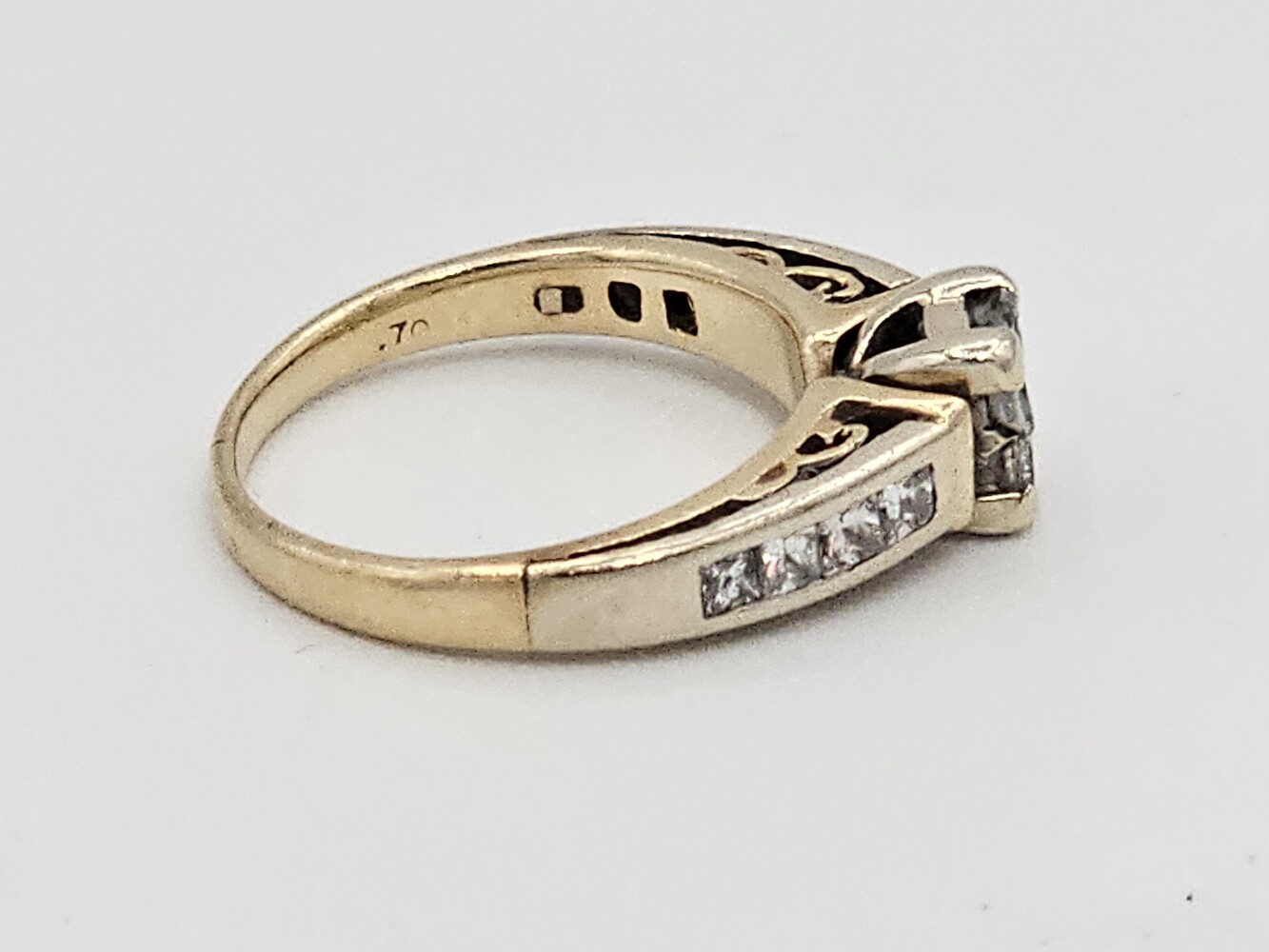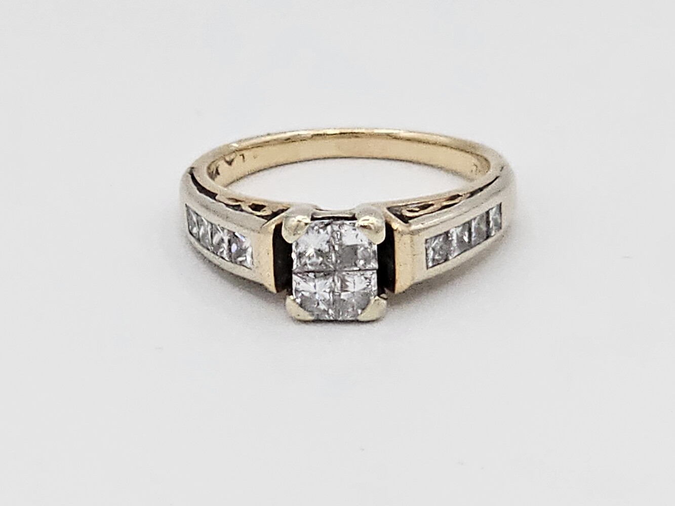 14kt yellow gold diamond ring. Size: 8, 3.50 dwts. Stones aprox: Q: Si1 C: F-G Tdw: 1.00 Ct