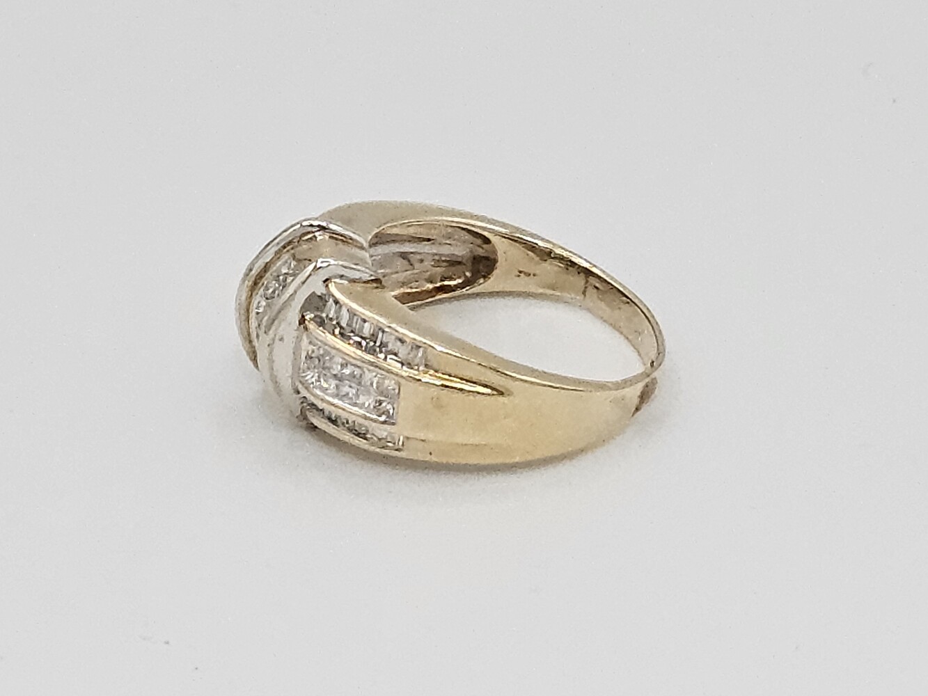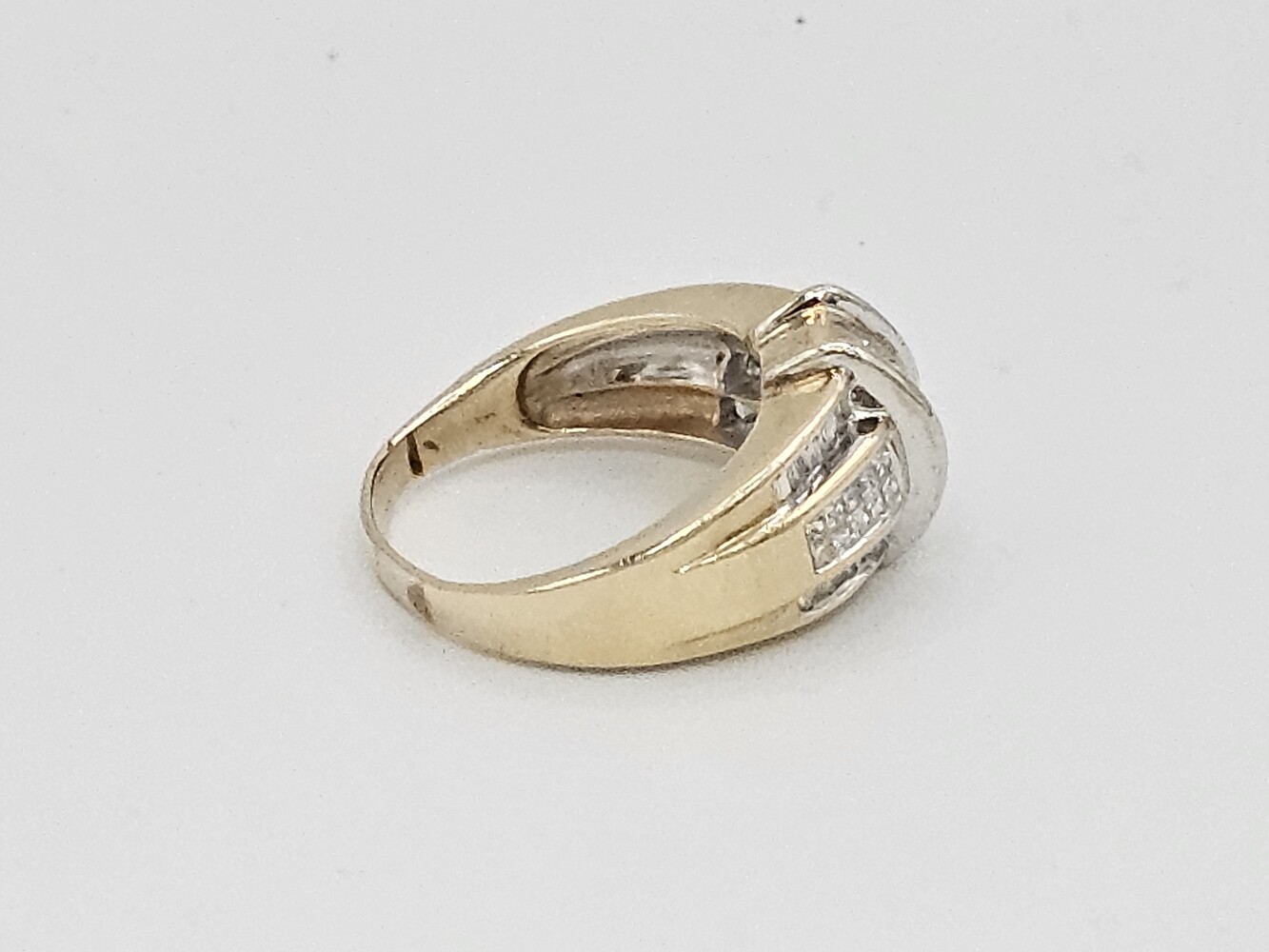 14kt yellow gold diamond ring. Size 9.5, 5.40 dwts. Stones aprox: Q: Vs2 C: F-G Tdw: 1.25 Cts