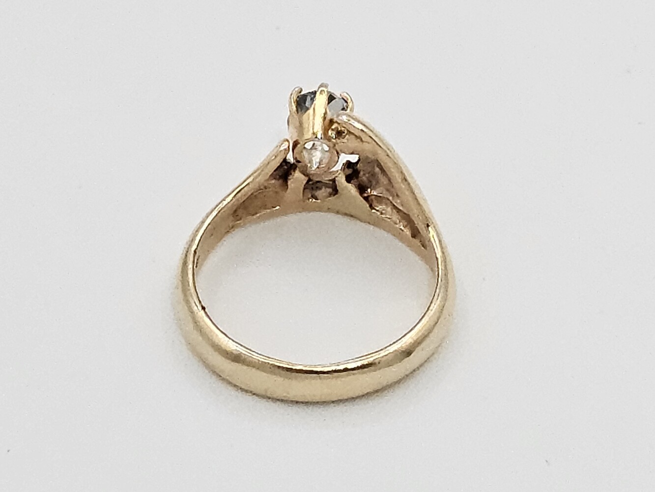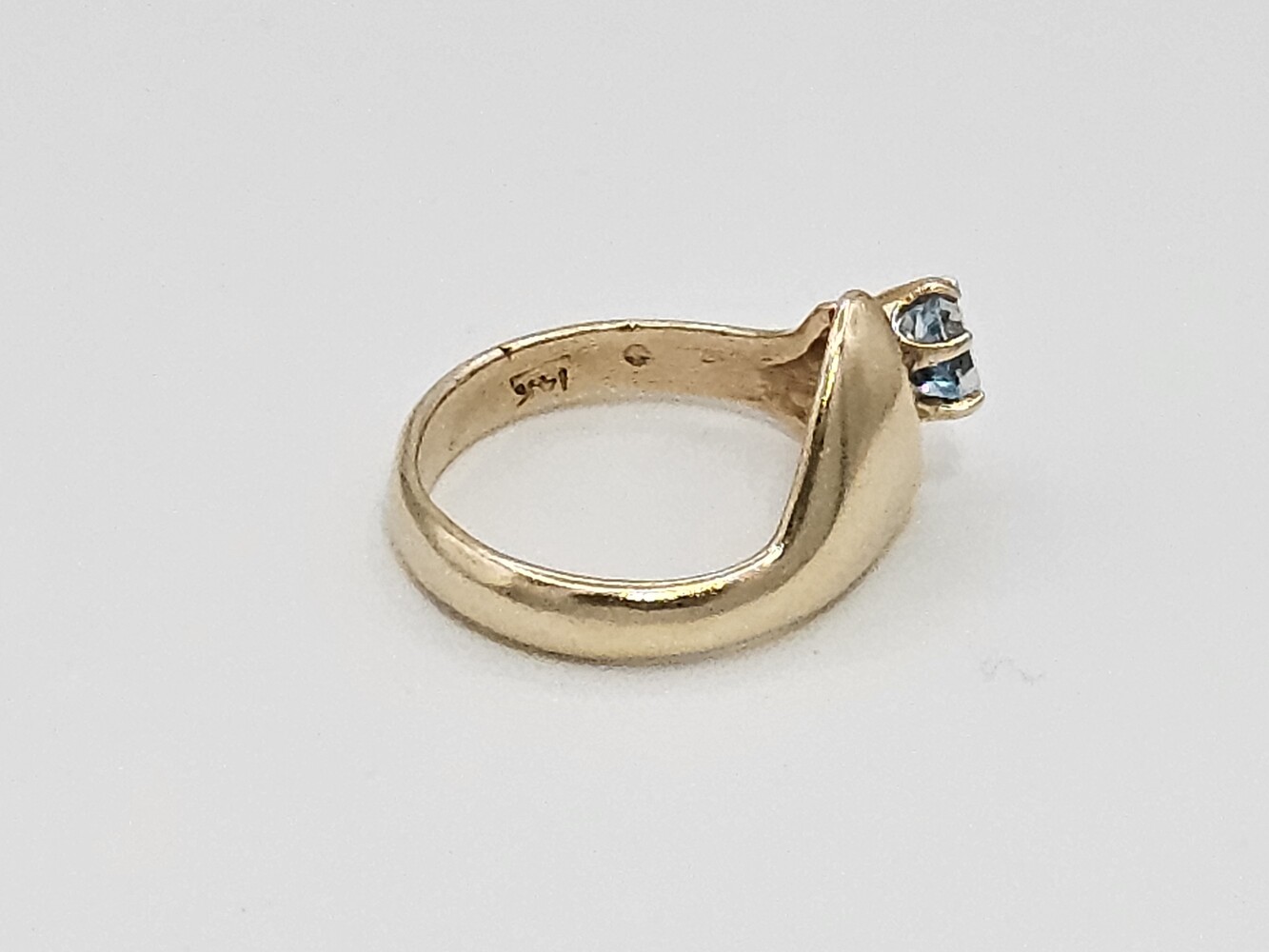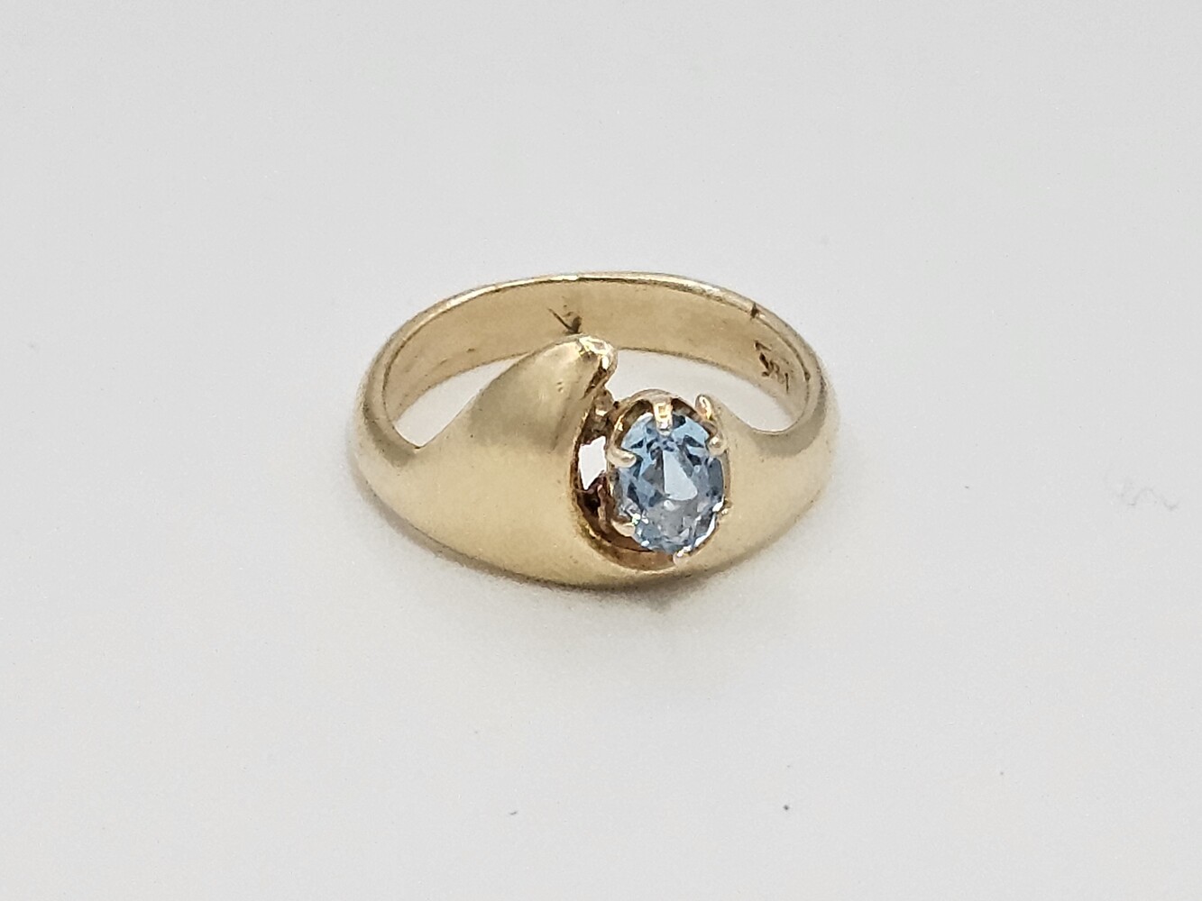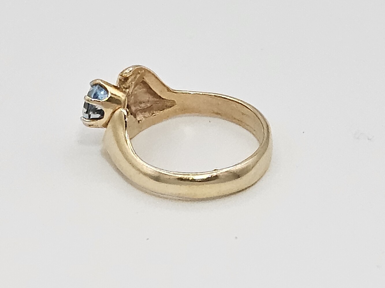 14kt yellow gold solitaire ring with a blue stone. Size 4.5, 2.5 dwts