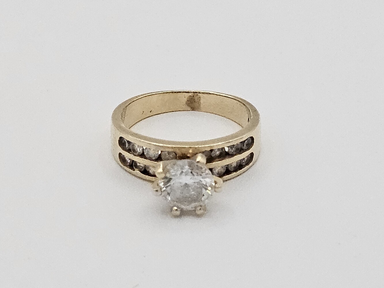 14kt yellow gold ring with stones (not diamonds). Size: 6.5, 2.90 dwts.