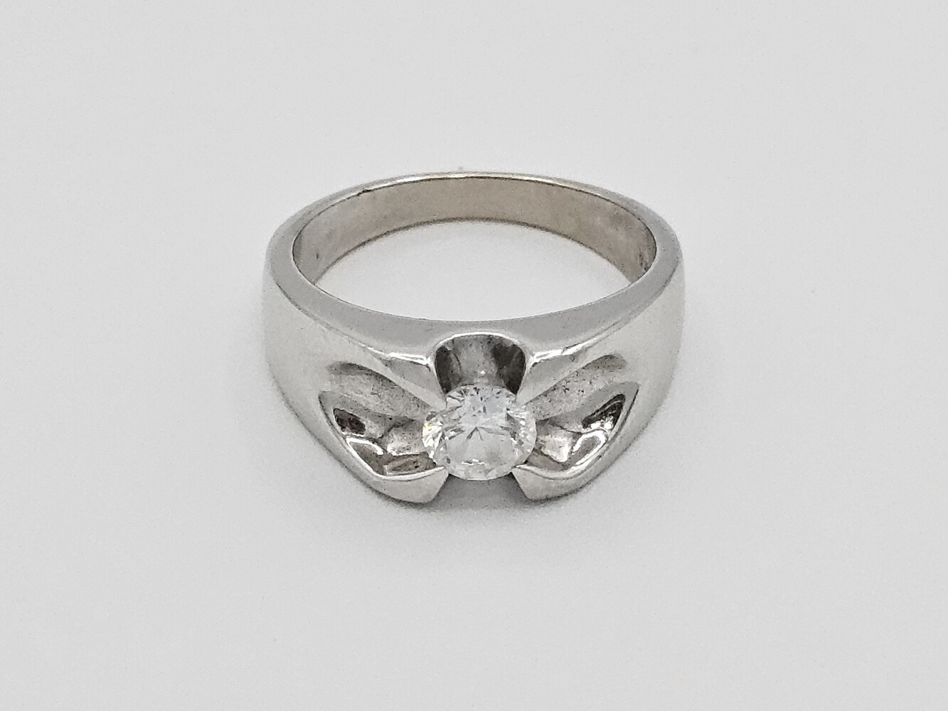 14kt white gold solitaire ring. Size 10, 6.40 dwts
