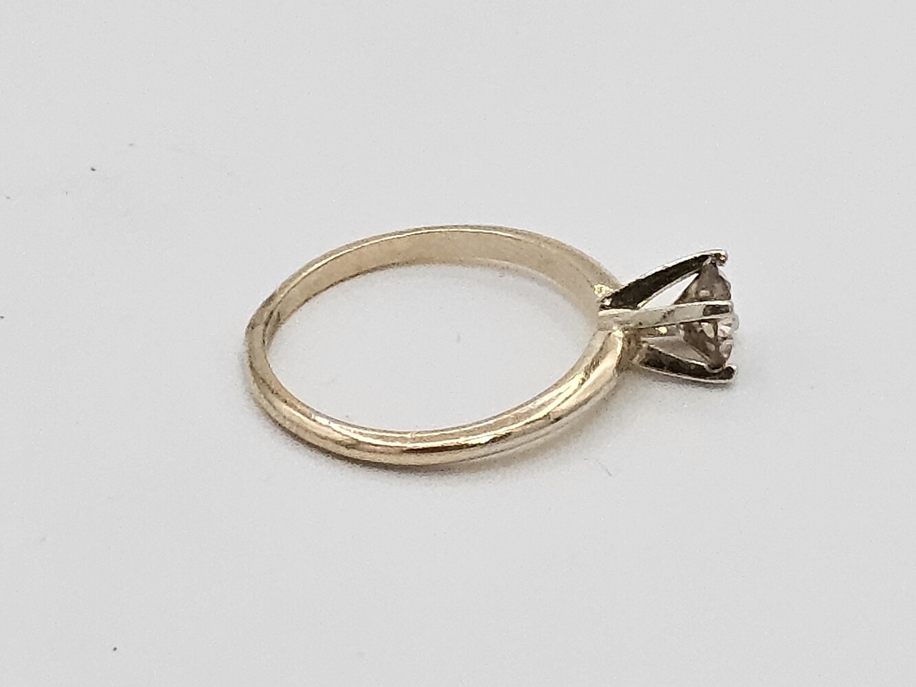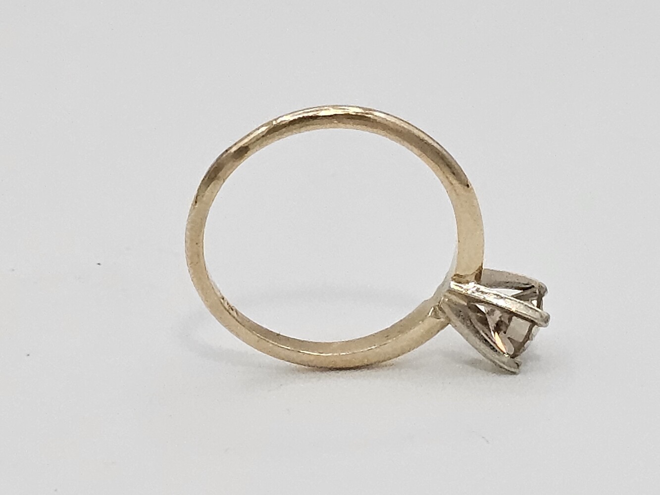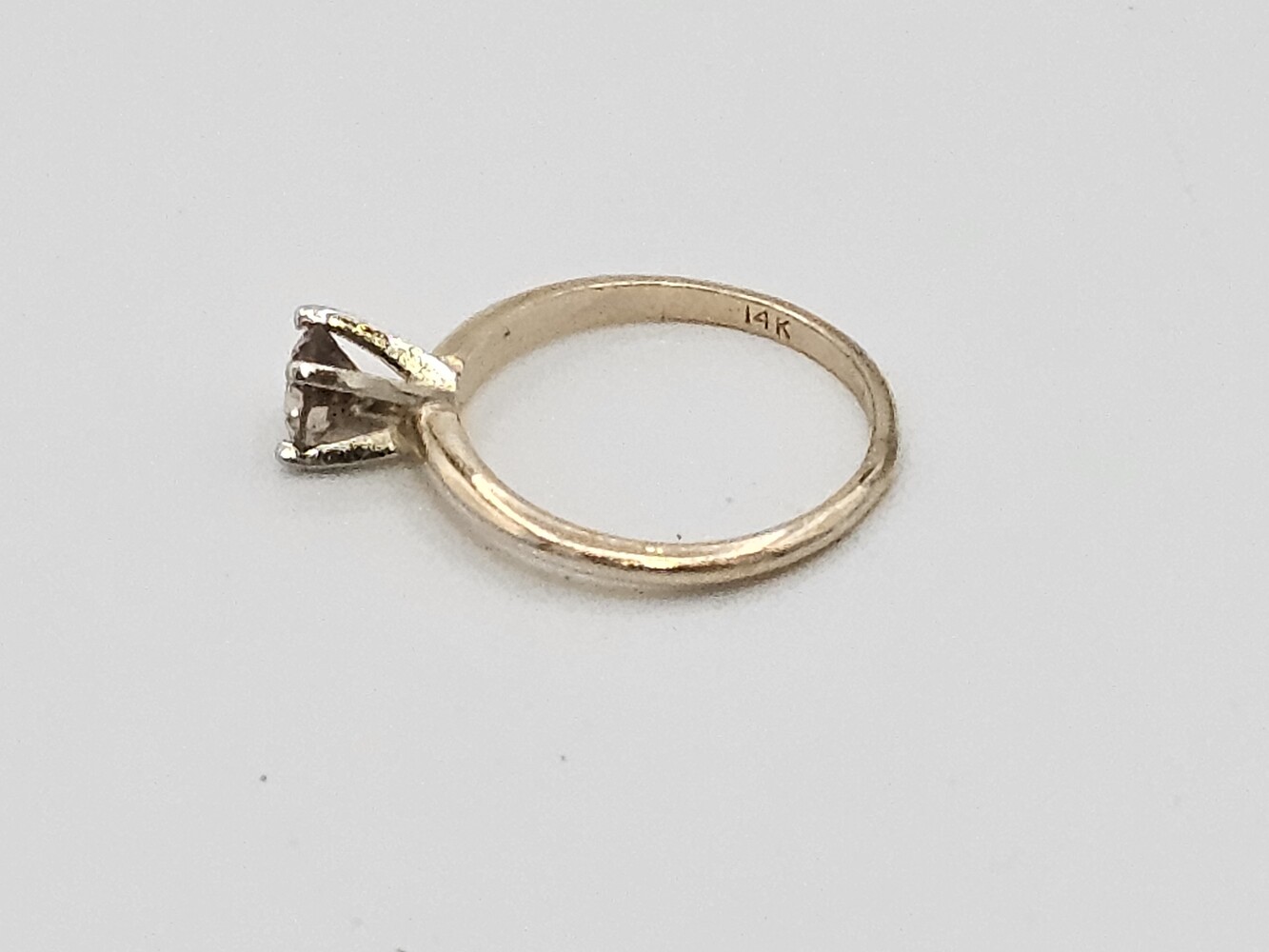 14kt yellow gold solitaire ring. Size 6, 1.20 dwts. Stone aprox: Q: Si1 C: Champagne Tdw: 0.75 Ct
