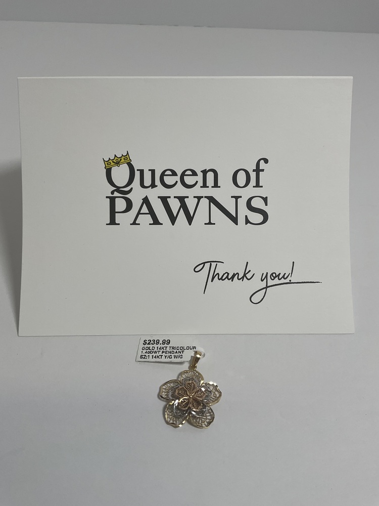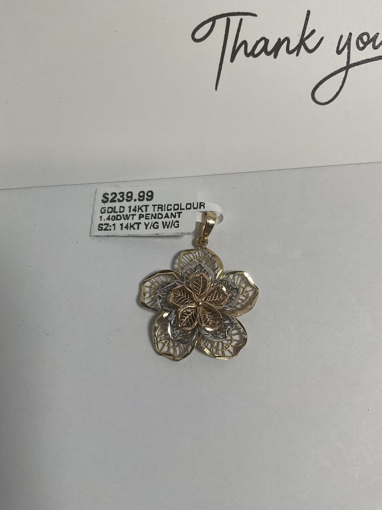 Exquisite 14kt Tricolour Gold Pendant, 1.40dwt, in vibrant hues of Yellow, White & Rose; a timeless wardrobe staple for the discerning woman.