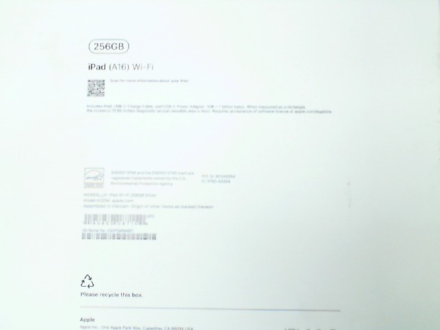 IPAD A16 WIFI 256GB IN BOX (NO CHARGER) SILVER COLOR NO CHARGER