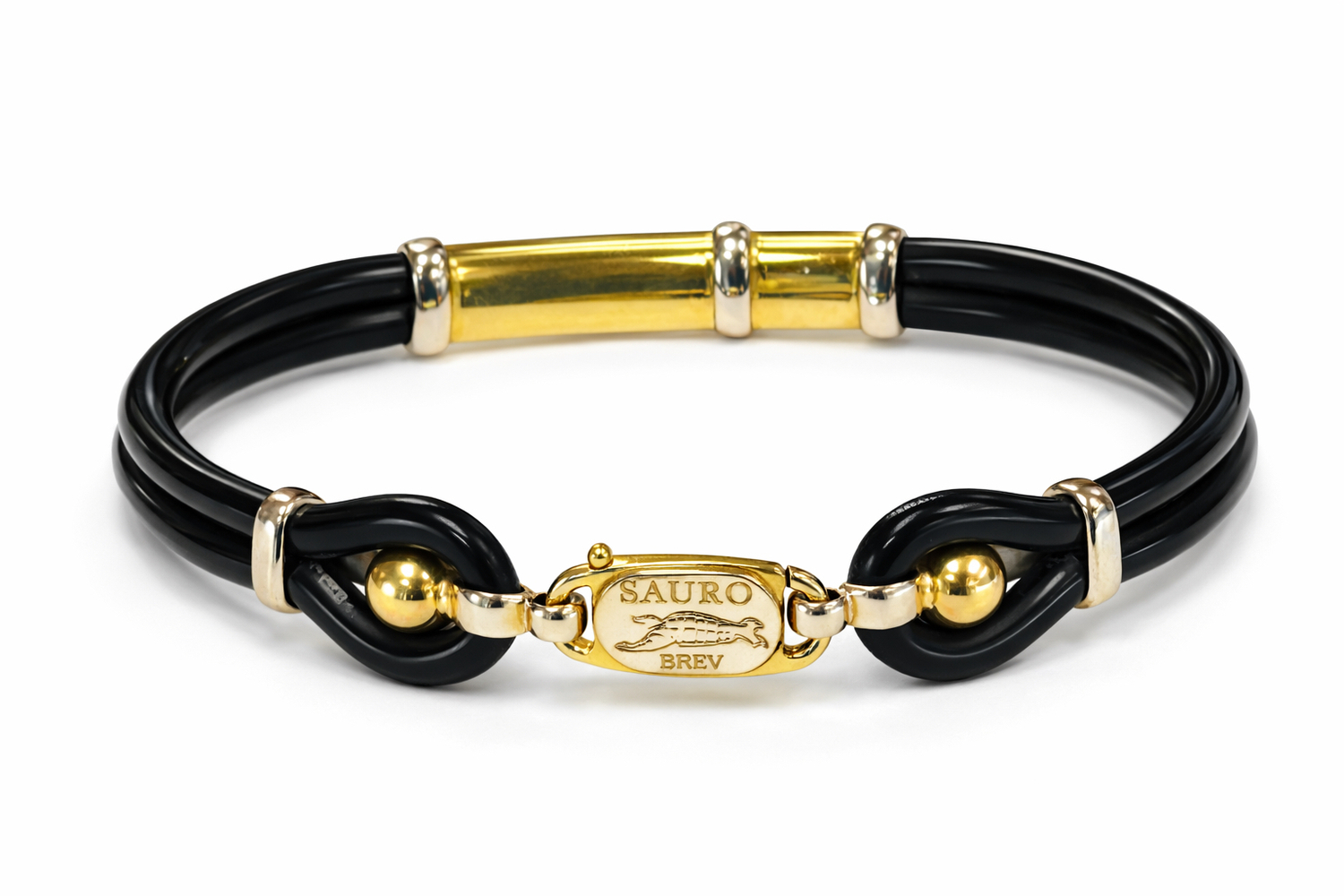 Gold 18kt Two tone 10.90dwt Bracelet Sz:8 18KYG/RUBBER BREV SAURO BRACELET 10.9DWT BREV SUARO