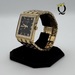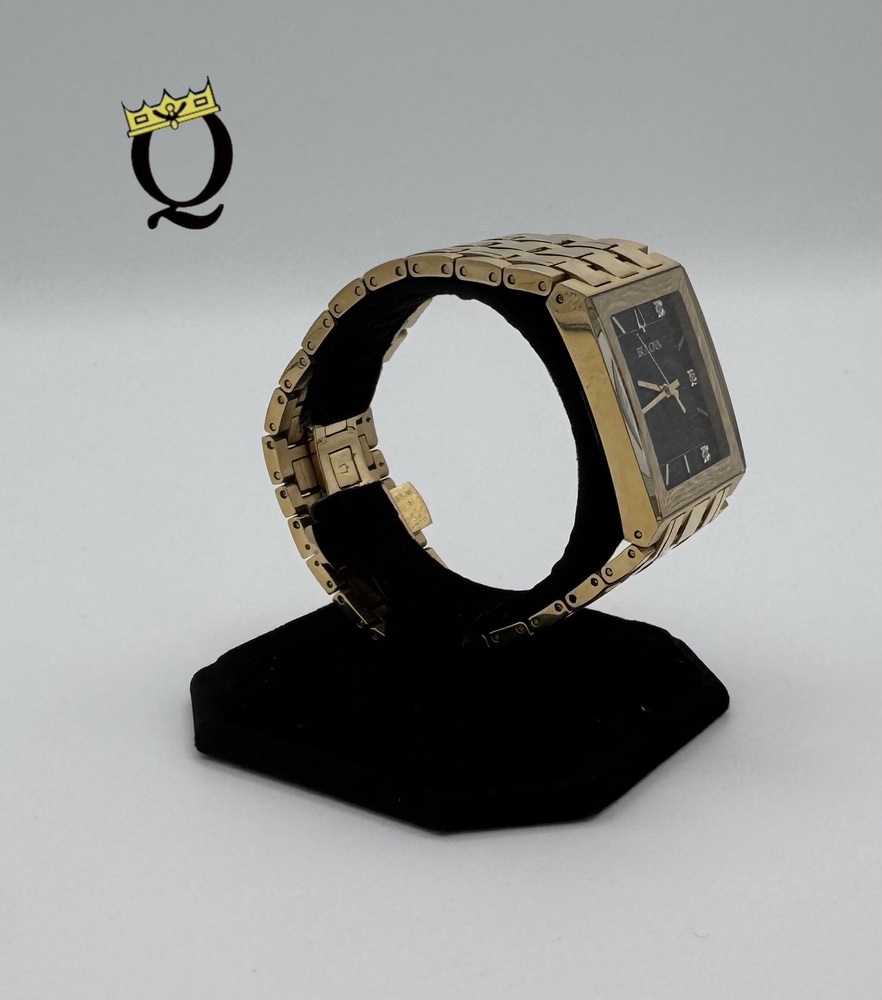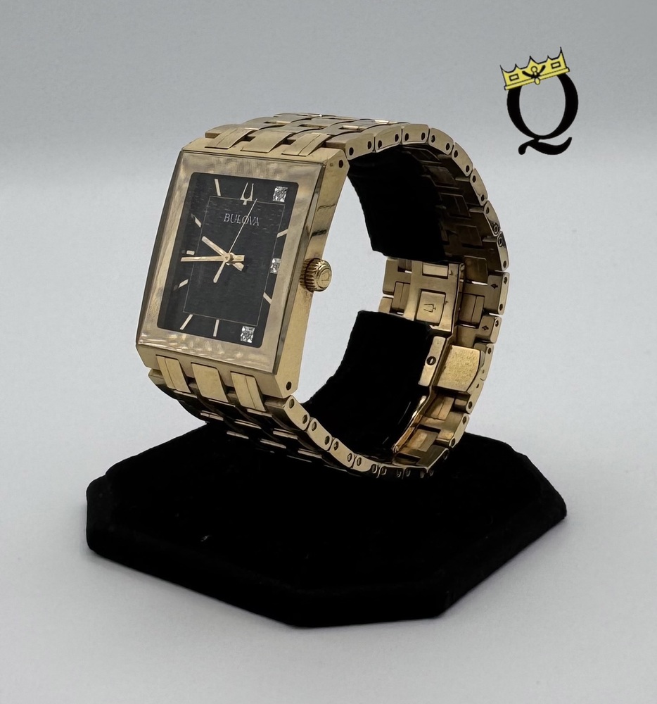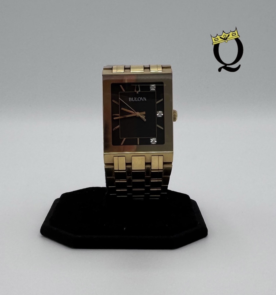 The BULOVA Quadra MARC ANTHONY watch manifests unique sophistication, blending modern design with precise craftsmanship. It features a square black dial, silver-tone hands, a date display, and a stainless steel bracelet, all driven by quartz movement for timekeeping accuracy. It is also highly durable, being water-resistant.