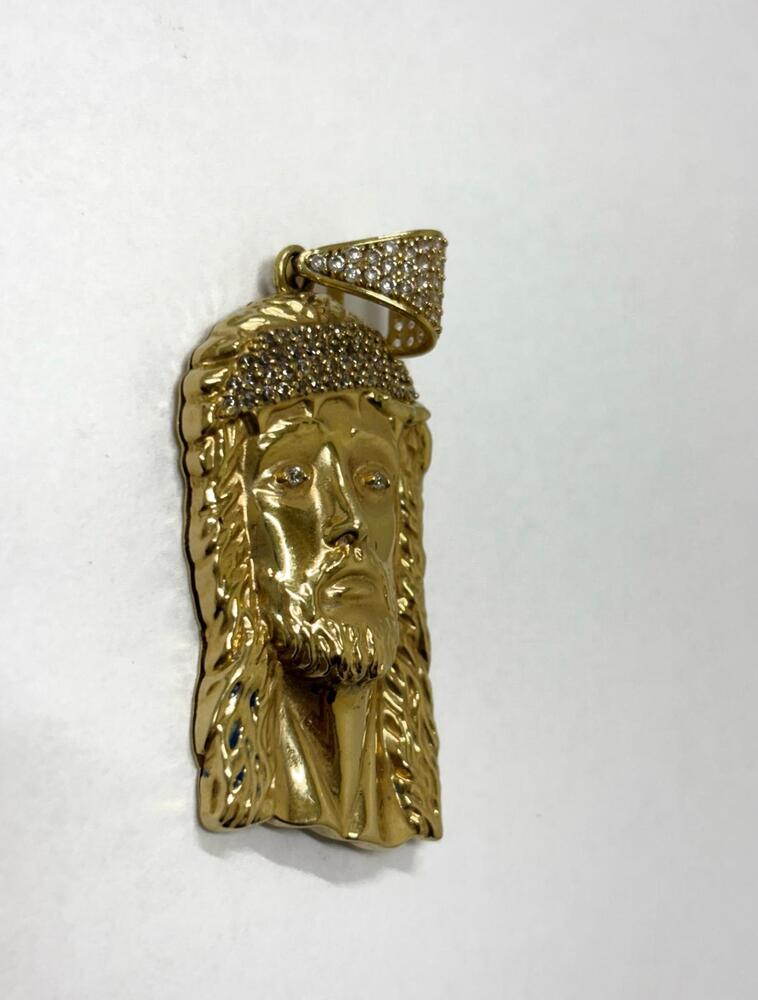 Gold 14kt Yellow 6.80dwt Charm Cluster Jesus Head Charm 100 CZS 0.01cts.