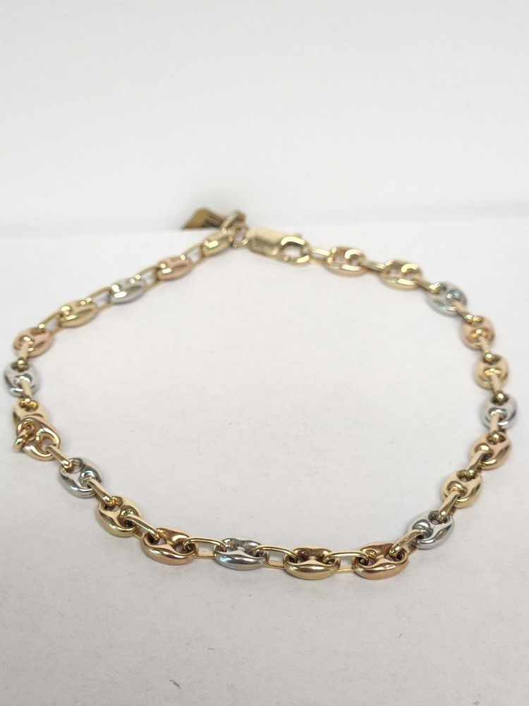 Embrace luxury with this exquisite 14kt Gold Bracelet, weighing a substantial 5.40dwt. Displaying the classic Gucci Puff / Mariner Link design, it breathes elegance and sophistication on your wrist. Bought from the hub of premium Gucci, discover grandeur in every glint of this bracelet. Flash your style, ignite your charm!