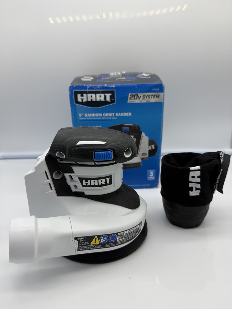 The Hart HPSD01 Cordless Orbit Sander is a 5 random orbit sander powered by a 20V MAX lithium-ion battery. Featuring variable speed control, dust-sealed switch, and quick hook-and-loop sandpaper changes, this tool provides high working efficiency. Please note, it's sold as the tool only, excluding battery and charger.