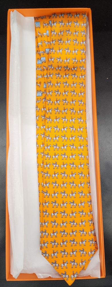 Exemplifying timeless elegance, this intricately designed Hermès, strikes the perfect balance between sophistication and quirkiness. Adorned with an orange horseman motif, emphasizes individuality and excellence.