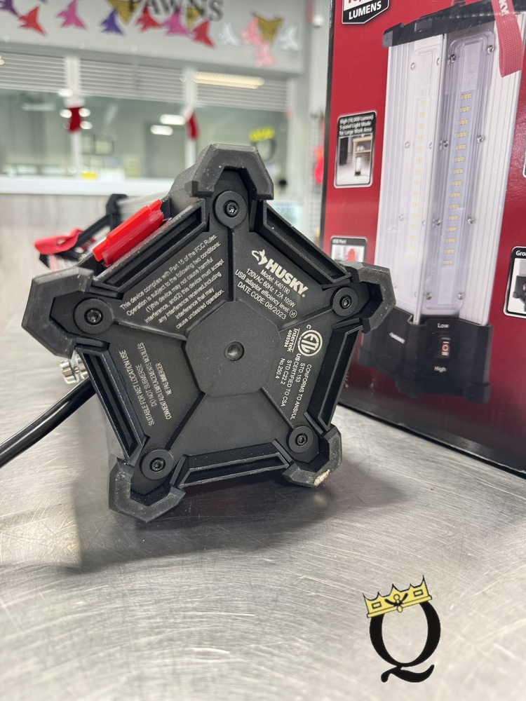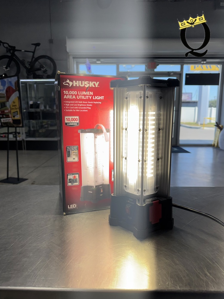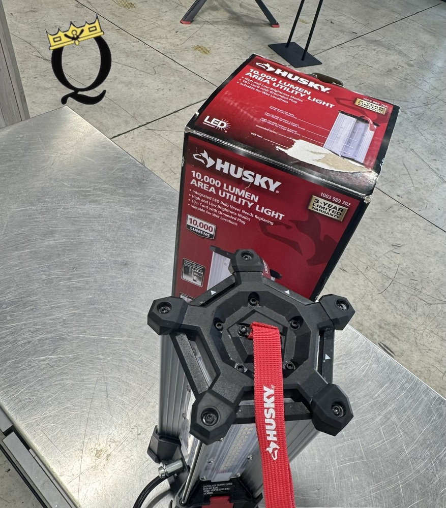 The Husky 10,000 Lumen Area Utility Light provides powerful, ultra-bright illumination for large spaces. It's durable, suitable for indoor/outdoor use, has a tripod mount for easy positioning, and an integrated LED bulb to ensure energy efficiency. Ideal for construction sites, workshops, or events.