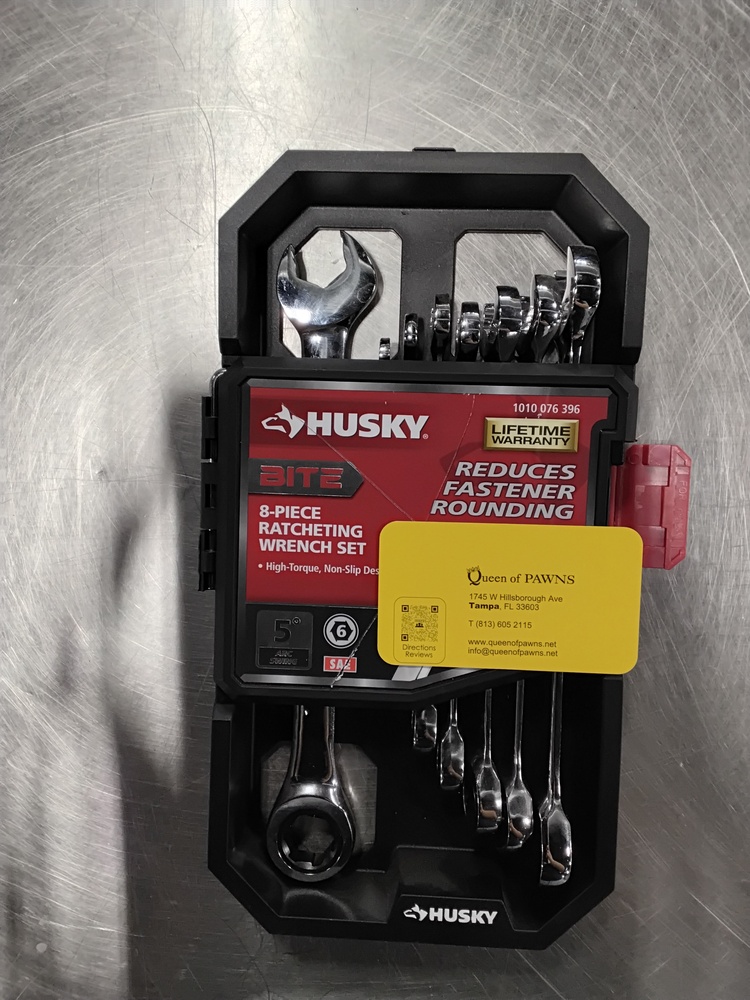 The Husky BITE 8-Piece Wrench Set features SAE measurements and a 72-tooth ratchet mechanism for high torque capacity. Comprising a range of sizes, it ensures versatile use. Wrenches incorporate BITE feature for enhanced grip. Durable, corrosion-resistant, ideal for professional and DIY projects.