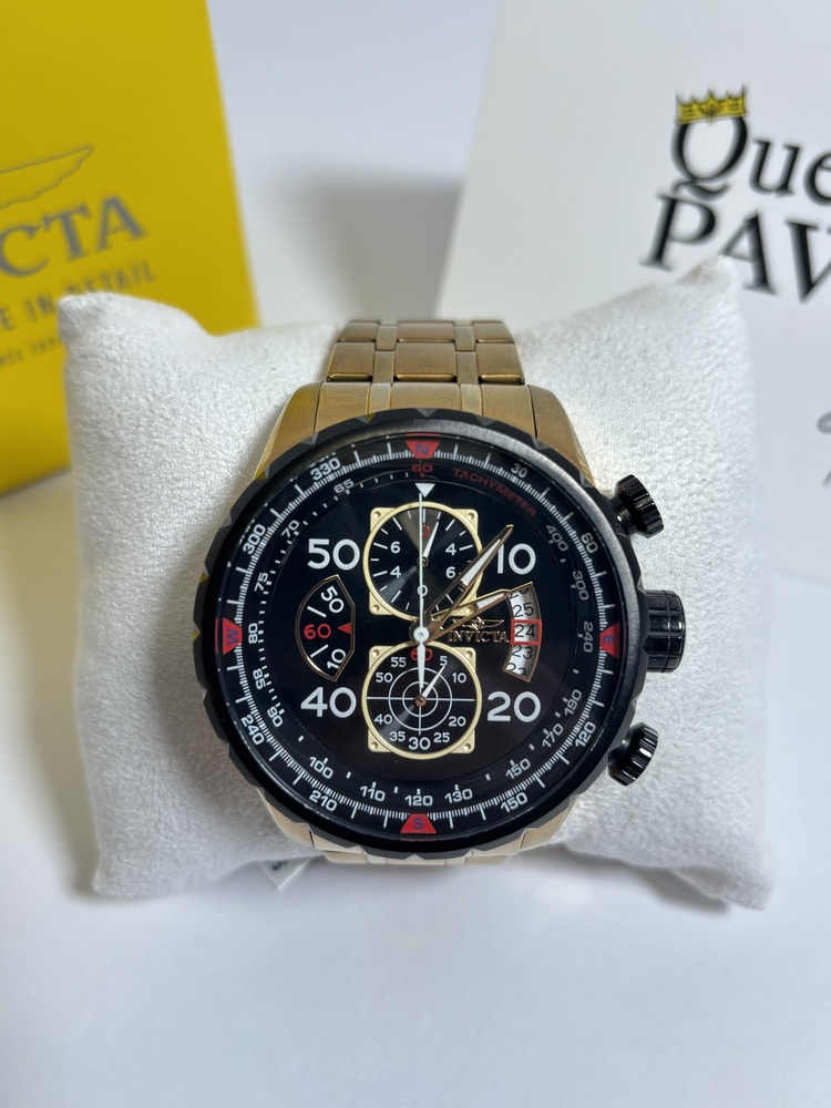 Behold the exquisite Invicta Aviator for the discerning gentleman. Crafted from pristine stainless steel, it flaunts a size-6 fit and a robust 46MM dial. This alluring timepiece weighs a solid 136dwt. A high-end emblem of masculine style and precision.