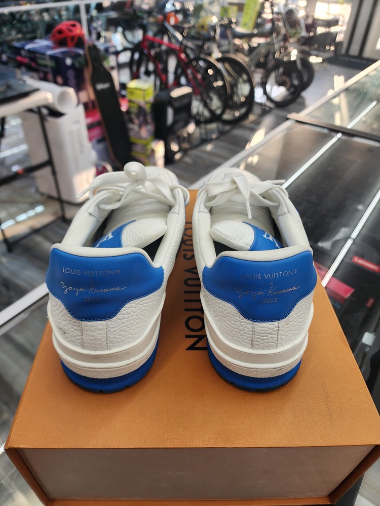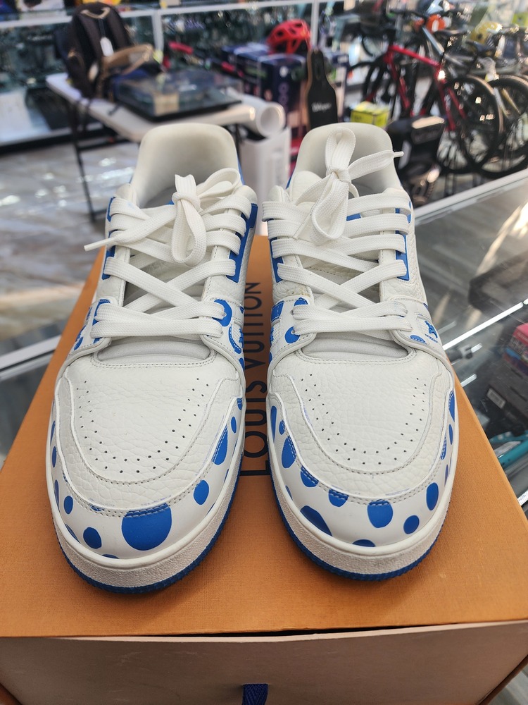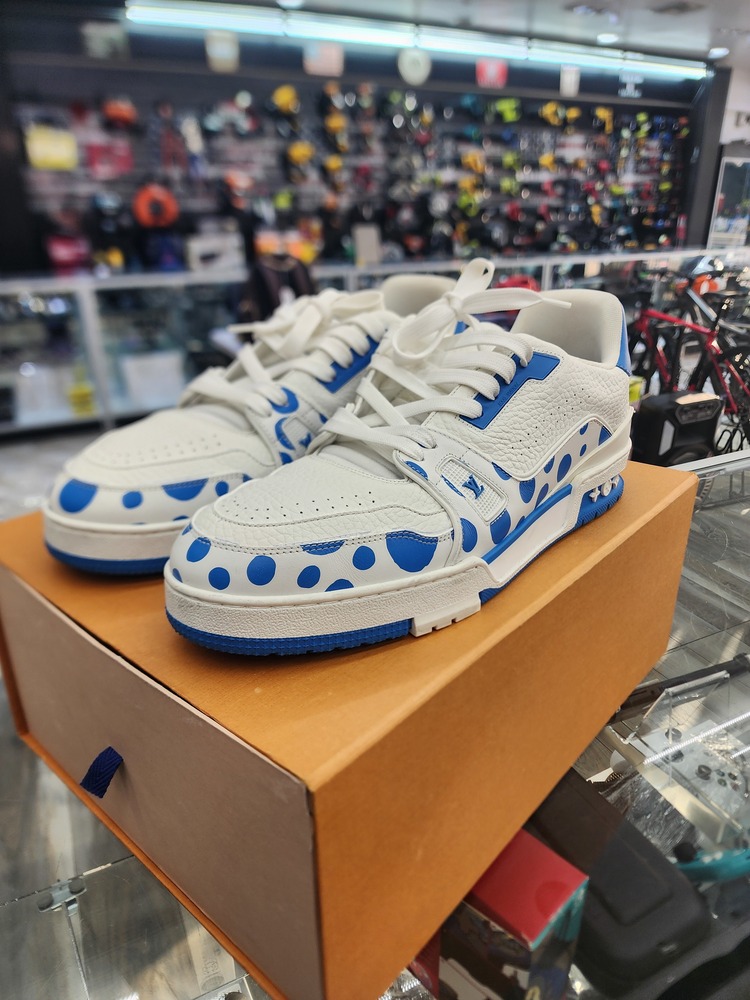 Step into the world of art and luxury with the Louis Vuitton x Yayoi Kusama LV Trainer sneakers. This limited-edition sneaker is a masterpiece of the "Creating Infinity" collection, blending Louis Vuitton's iconic design with the legendary artist Yayoi Kusama's signature "Infinity Dots" motif.