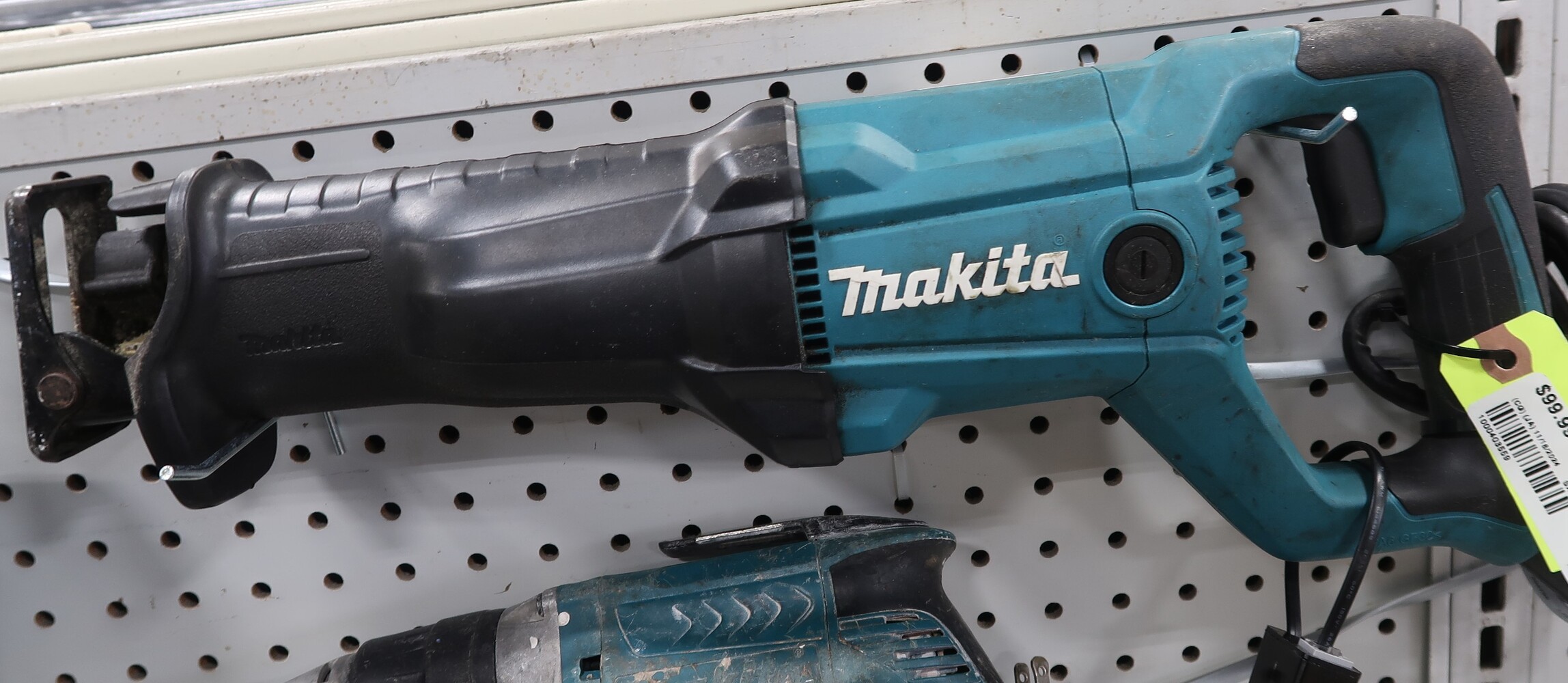 The Makita JR3051T is a 12 Amp corded reciprocating saw. Featuring a powerful motor and variable speed for a versatile cutting capability, the tool sports ergonomically designed handles for comfortable and secure grip. Despite a durable make, it has been previously used.