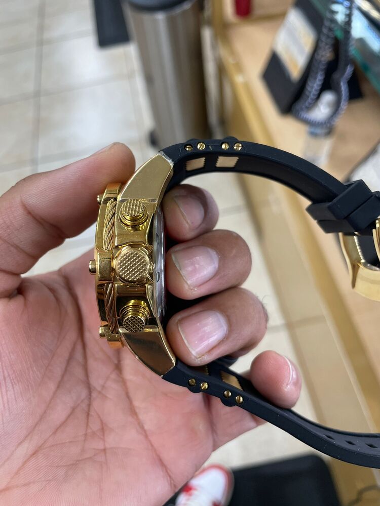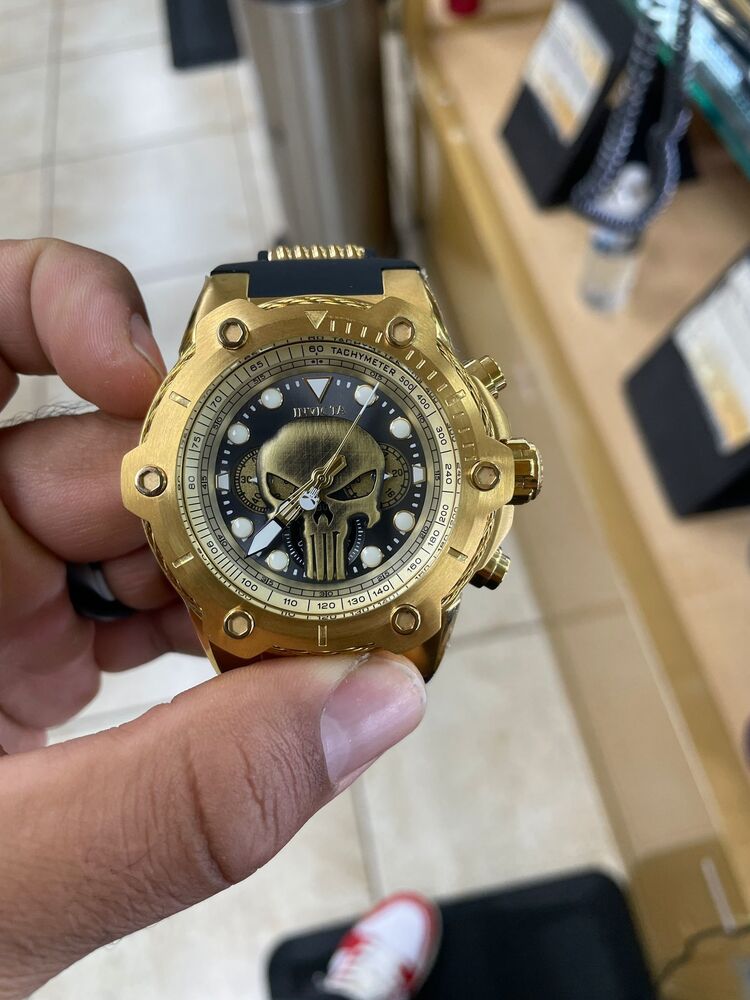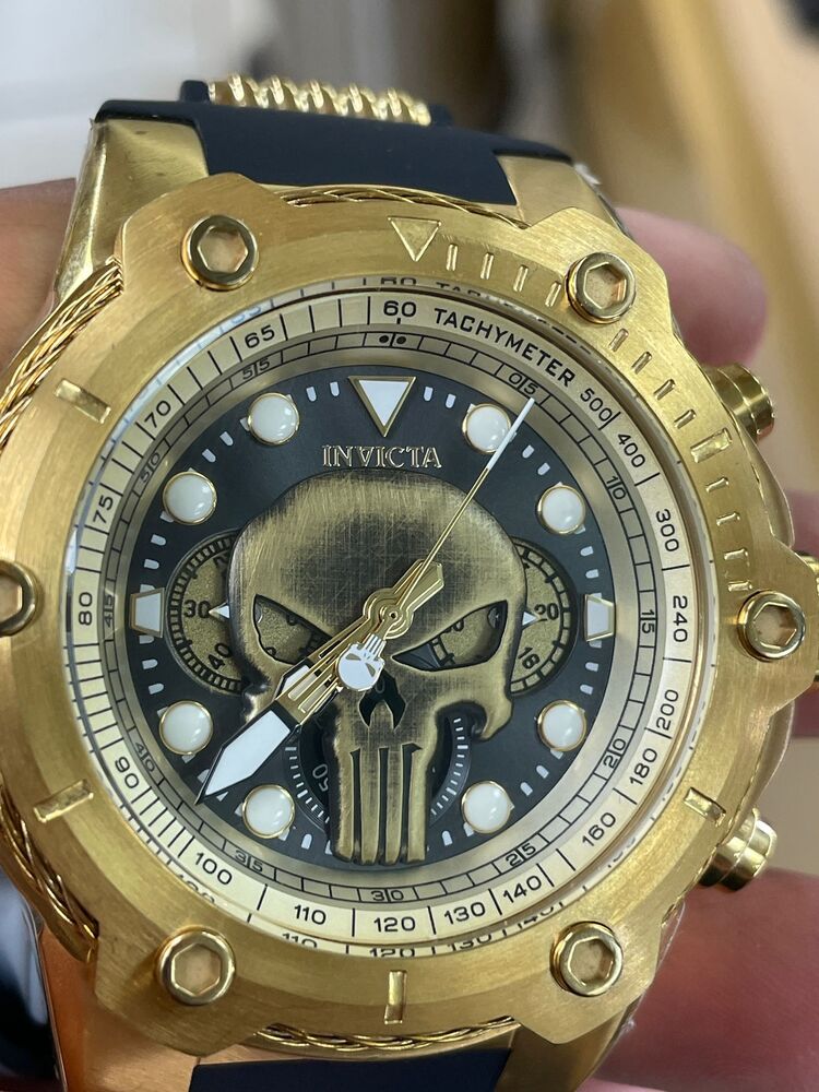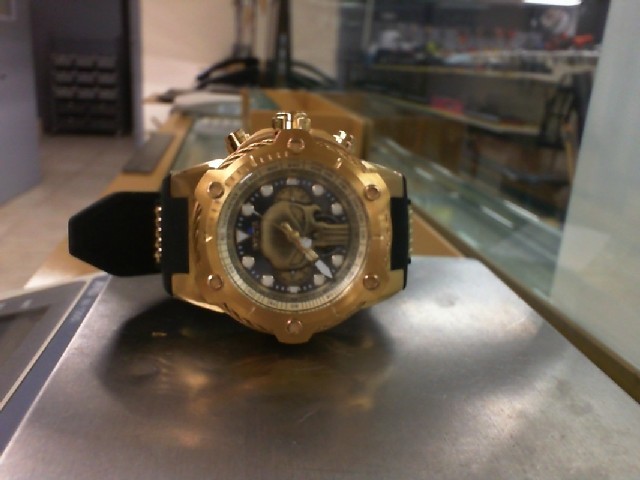 Stainless Steel 0.000 Two tone 137.40dwt Watch Sz:10 WATCH INVICTA BLK RUBER BAND GOLD TONE AND BLK DIAL W"THE PUNISHER" Male Two tone Stainless Steel Watch Sz:10 137.4dwt/0kt 26925
