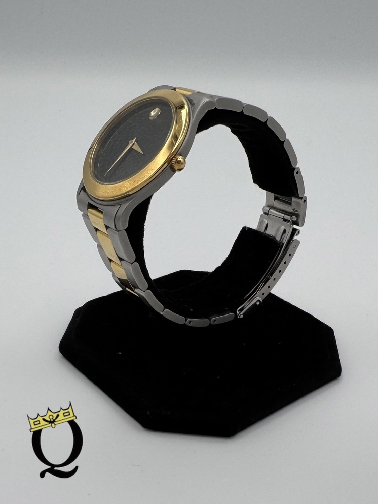The Men's Museum Classic watch features a 40mm stainless steel case with a yellow gold PVD finish. The black Museum dial is accentuated by yellow gold-toned hands and dot. A sleek stainless steel and yellow gold PVD-finished link bracelet completes the ensemble. It secures with a deployment clasp.