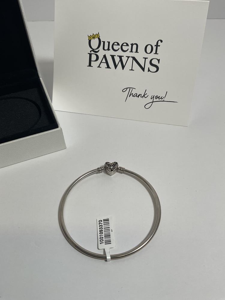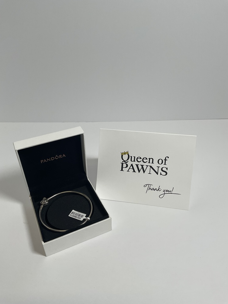 This women's Bangle from Pandora, a size 6, beautifully combines a sterling silver body with 0.925% purity and an impressive weight of 6.40 pennyweight. This impeccably crafted bracelet is an elegant and refined addition to any jewelry collection.