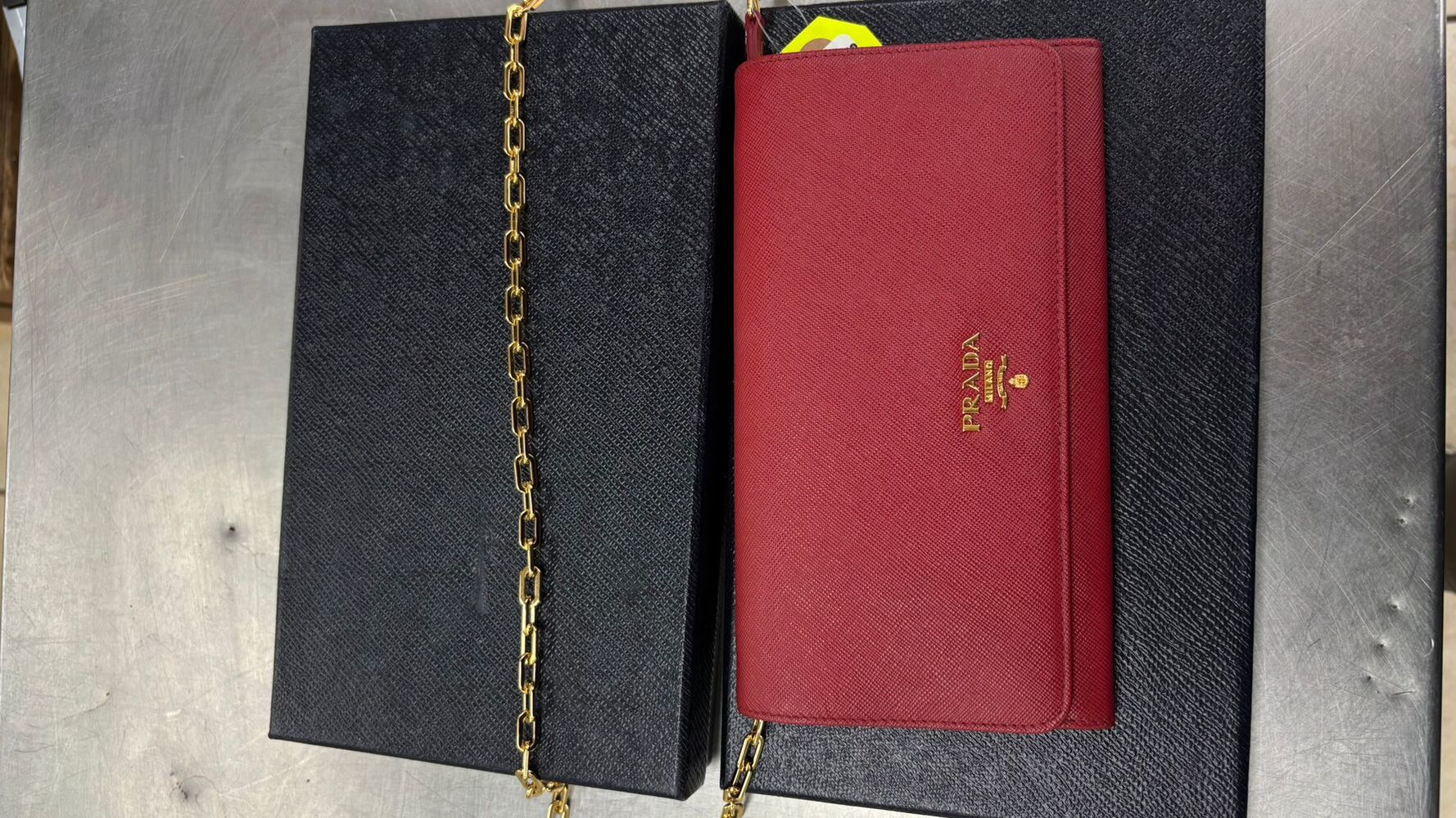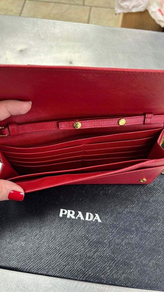 Purses red prada clutch purse in box ** AUTHENTICATION AVAILABLE AT THE STORE**