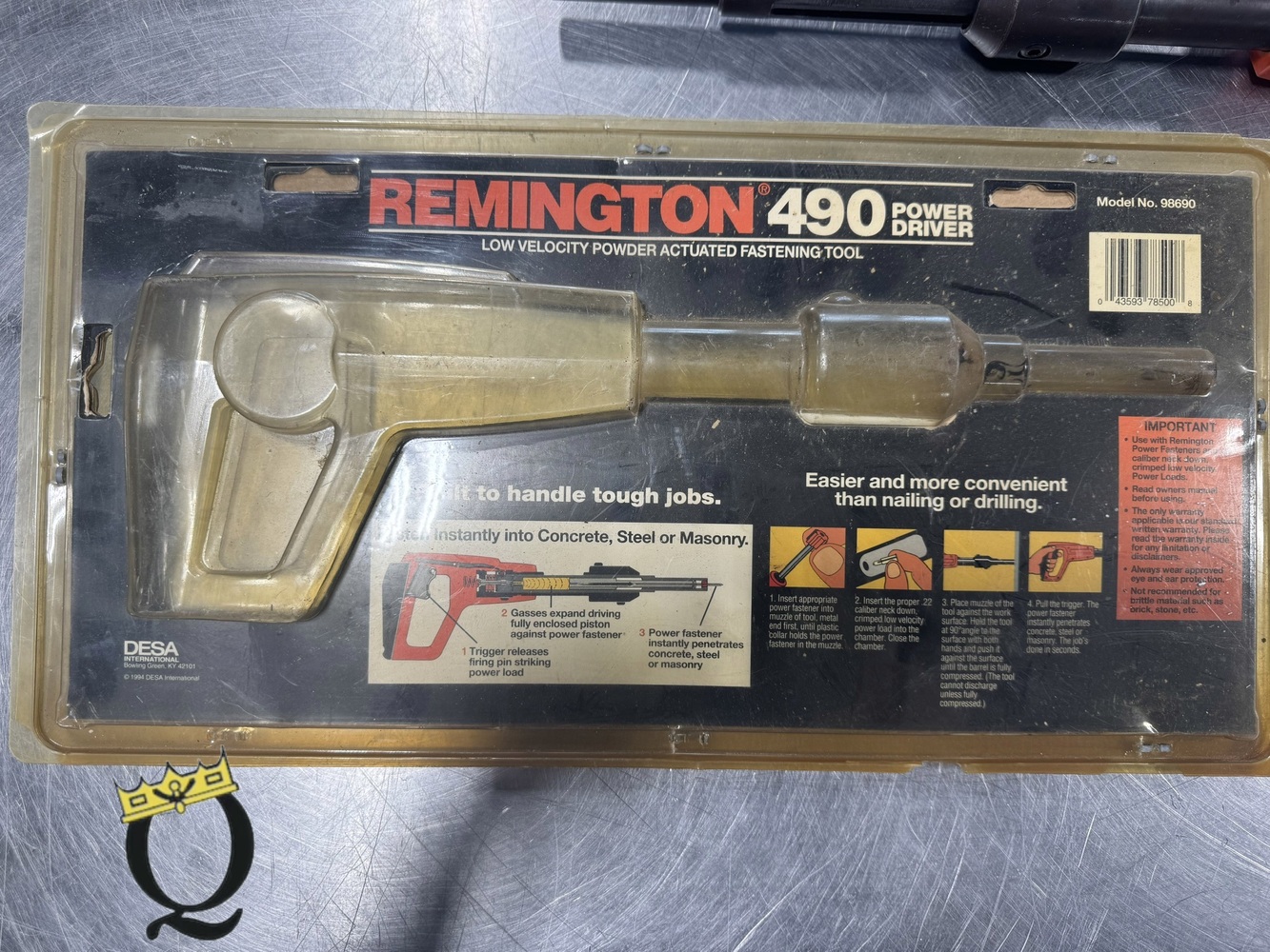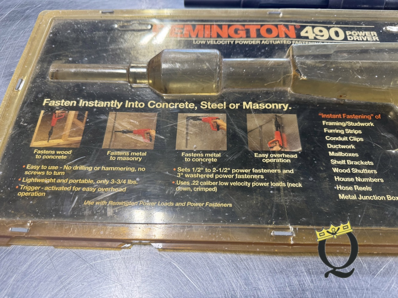 The Remington Model 490 is a versatile, powder-actuated tool designed for fastening materials to concrete or steel. It operates using .22 caliber loads, driving nails effectively. This tool is known for its durability and high performance, providing precise, quick, and safe operations in construction sites.