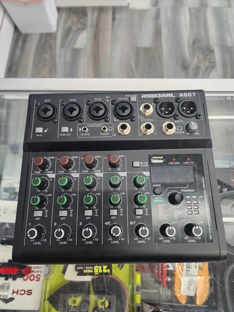 6-channel signal input and 1-channel stereo signal input 88 digital effects, built-in Bluetooth, digital display U disk player 1 channel independent recording output and monitoring port Low noise, high-precision microphone preamplifier, good sound quality Balanced microphone XLR input and balanced line TRS input 3-section channel equalization LED level display MP3 playback module 48V phantom power supply Equipped with headphone monitoring interface TYPE-C DC 5V power input
