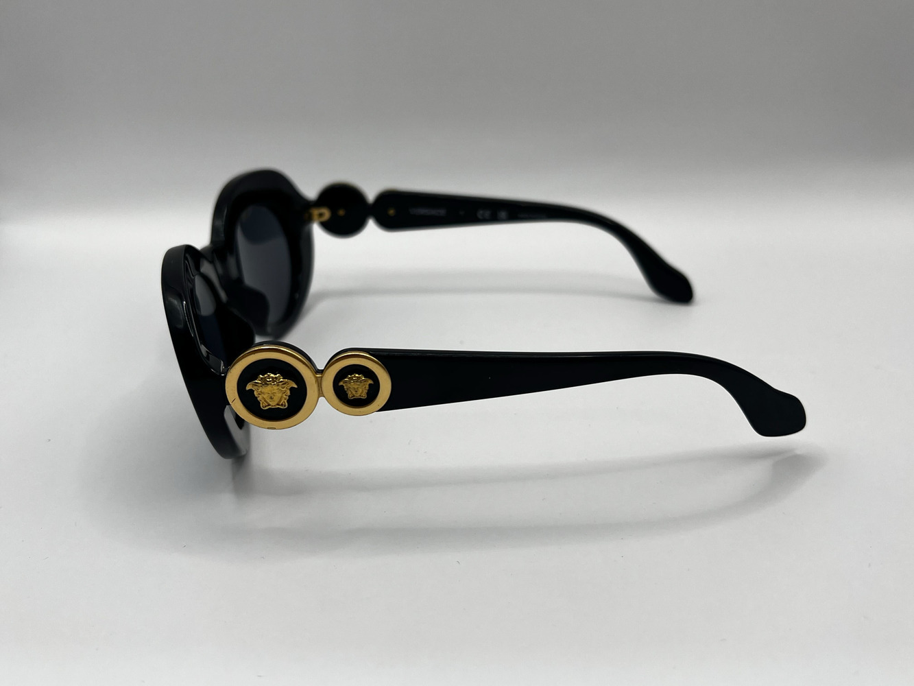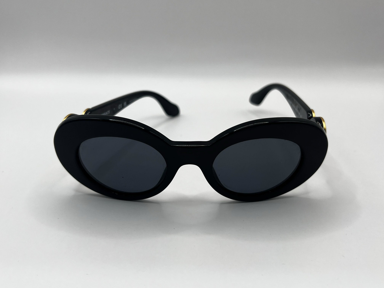 Indulge in the epitome of luxury with these pre-loved, majestic black Versace glasses in pristine condition. A symbol of refined elegance, they are neatly encased. Their timeless allure elevates your style while subtly whispering your affinity for iconic Italian craftsmanship. A must-have sophisticated accessory for the fashion-forward visionaries.