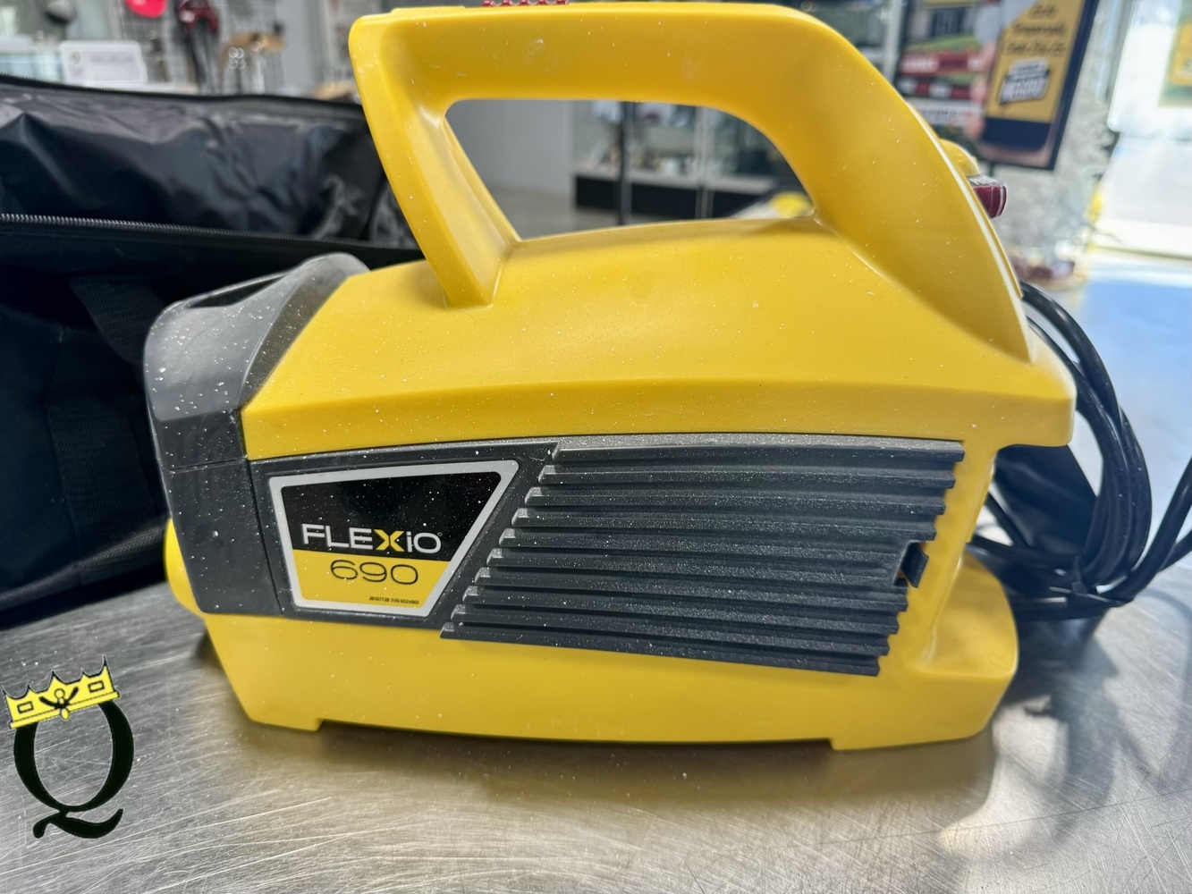 The Wagner Flexio 690 is a stationary HVLP paint sprayer that delivers a smooth, professional finish. Great for painting large areas, it features adjustable settings for material flow, pattern direction, and width, and comes with two nozzles for optimal versatility. It's fast, easy to use, and offers quick clean-up.